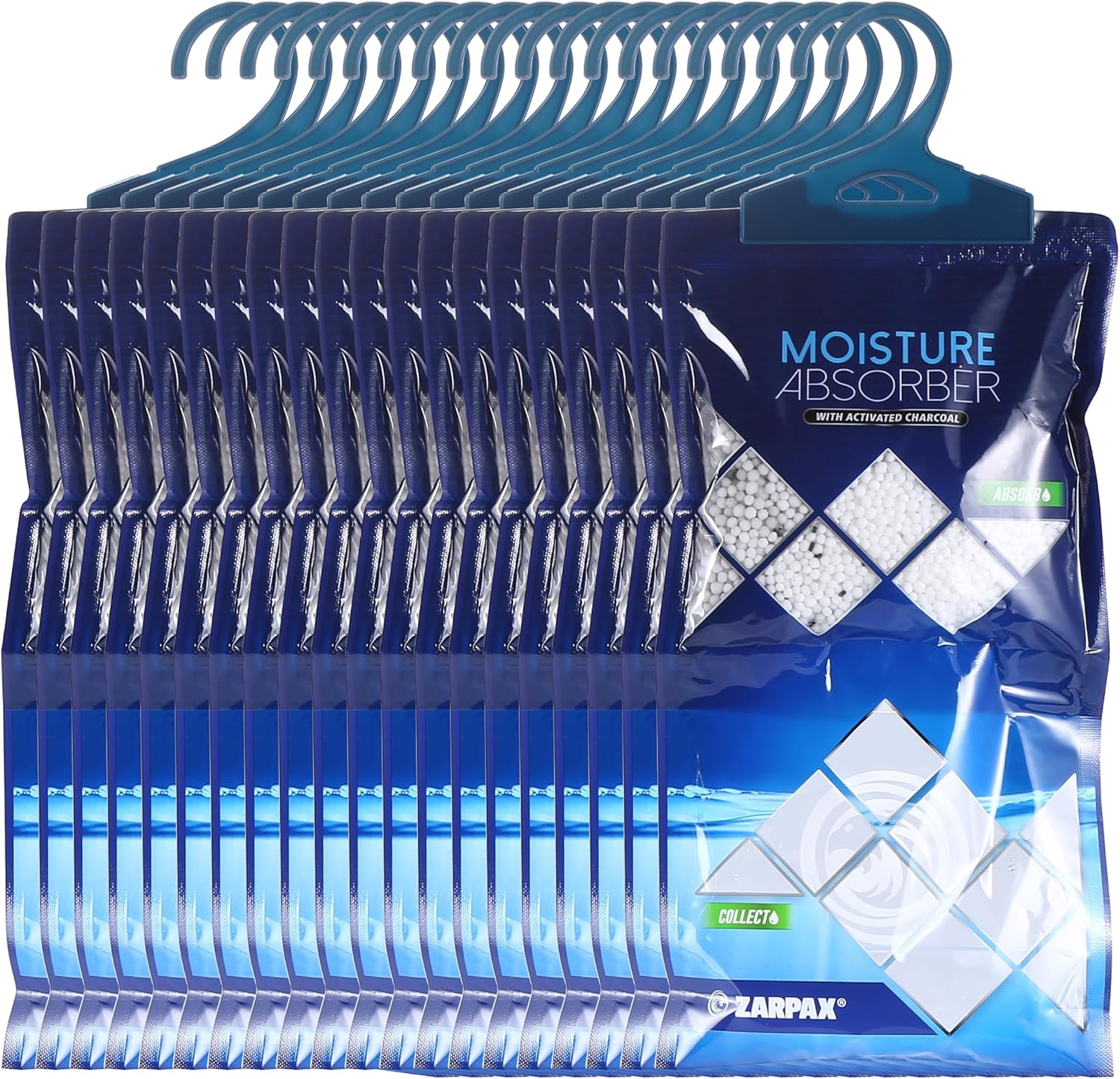 - CAPTURE & PREVENT MOISTURE: ZARPAX's hanging moisture absorbers are specially engineered capture and lock away moisture from the air effectively. Our anti-humidity bags feature an effective dehumidifying agent that absorbs moisture in the air, reducing humidity and musty odors. The activated charcoal helps eliminate and prevent musty odors. Our hanging moisture absorbers possess an anti-spill design that ensures the contents are securely sealed.