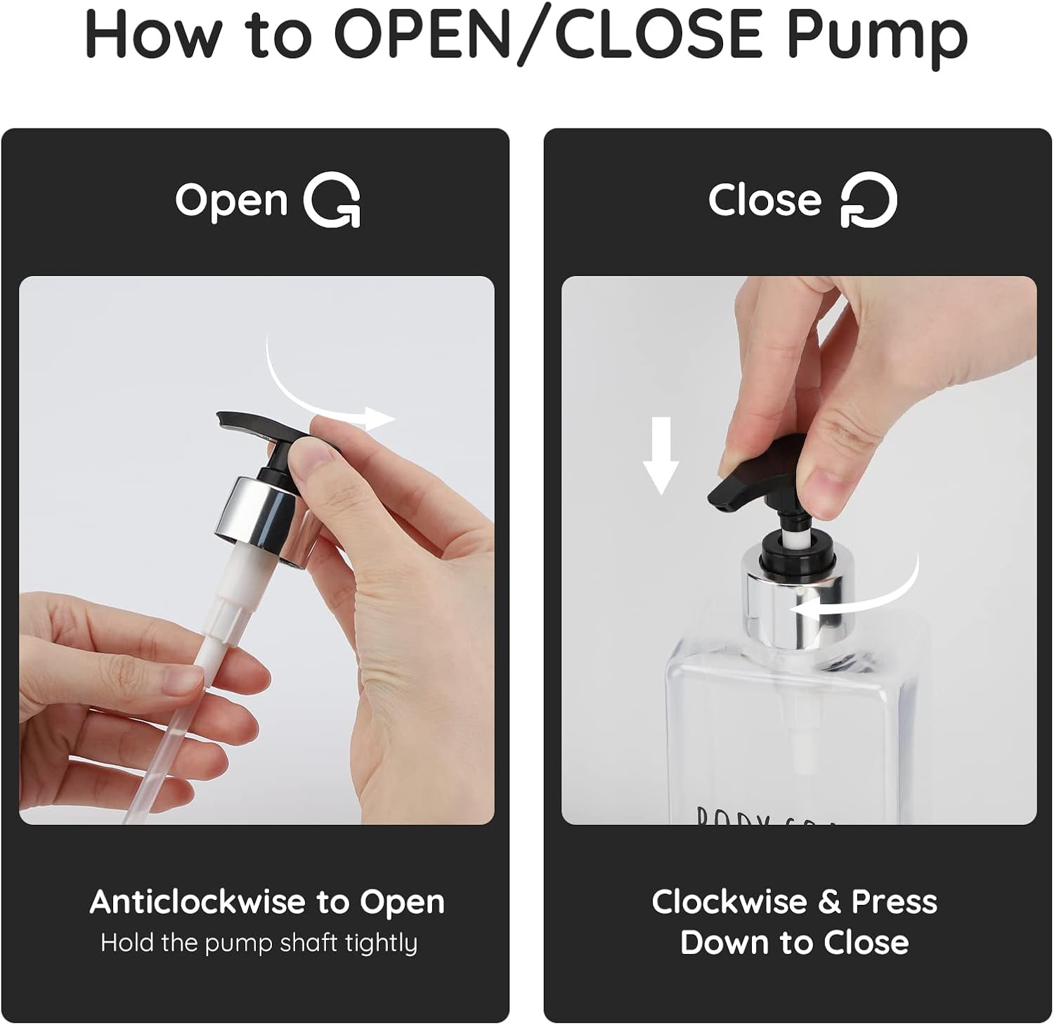 - 【Easy to Refill and Use】Remove the pump head and refill lotion with the wide mouth. Gently press the pump head to dispense it.