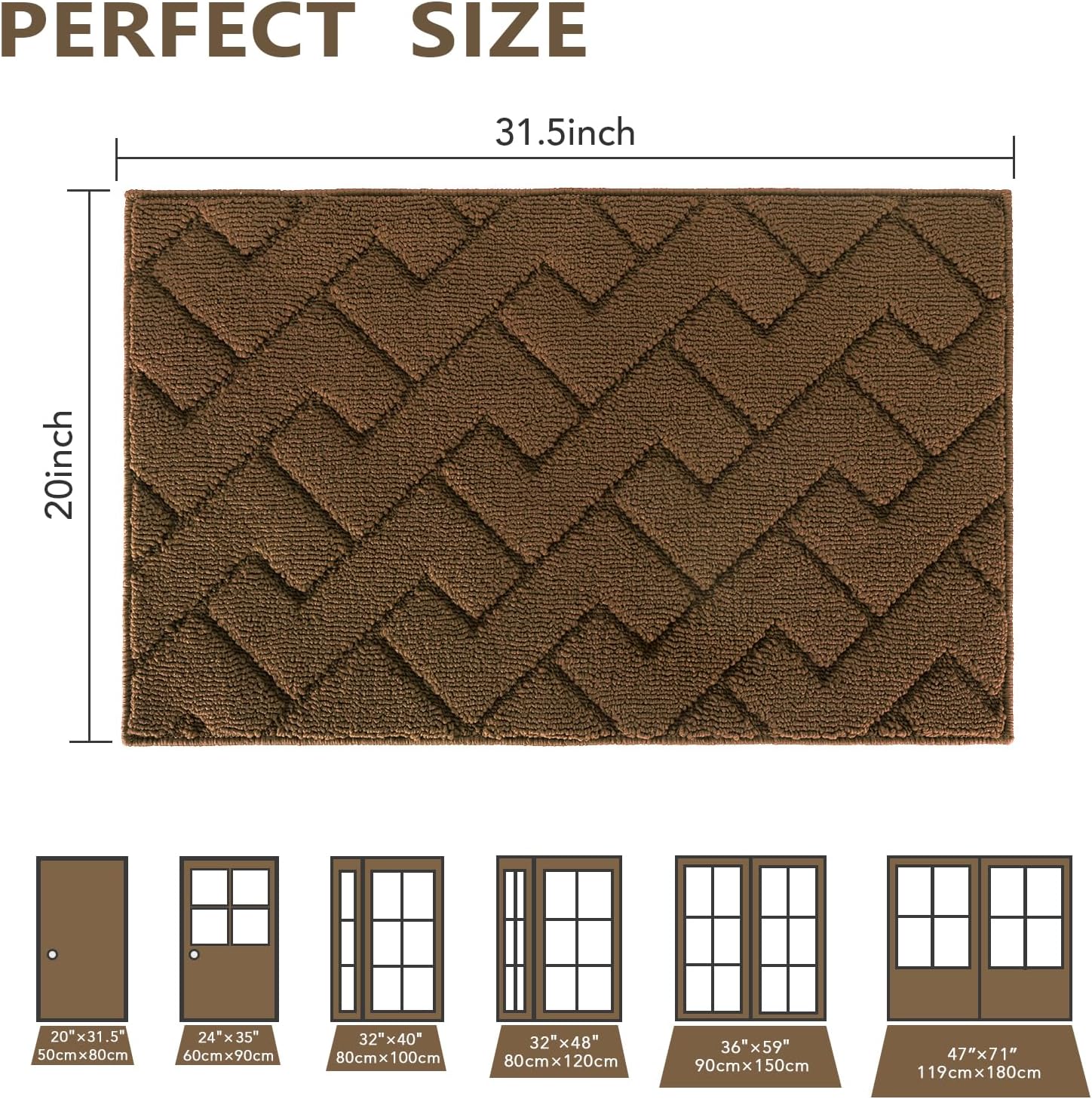 hicorfe Indoor Doormat,Front Back Door Mat TPR Backing Non Slip Mats 20"x31.5" Absorbent Resist Dirt Entrance Doormat Inside Floor for Entryway Washable Low-Profile(Dark Brown)