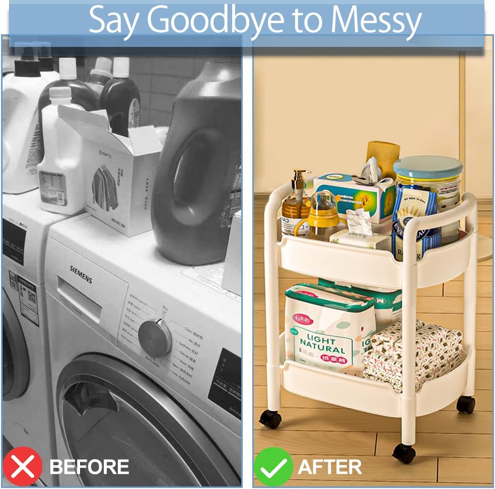 - 👍【Easy to Install】-- Equipped with a simple assembly instructions. No tools or screws needed. Only about 5-10 minutes to set up your rolling cart. Stylish design are decorative for anywhere. It has no edges or corners which is safe and delighted to use.