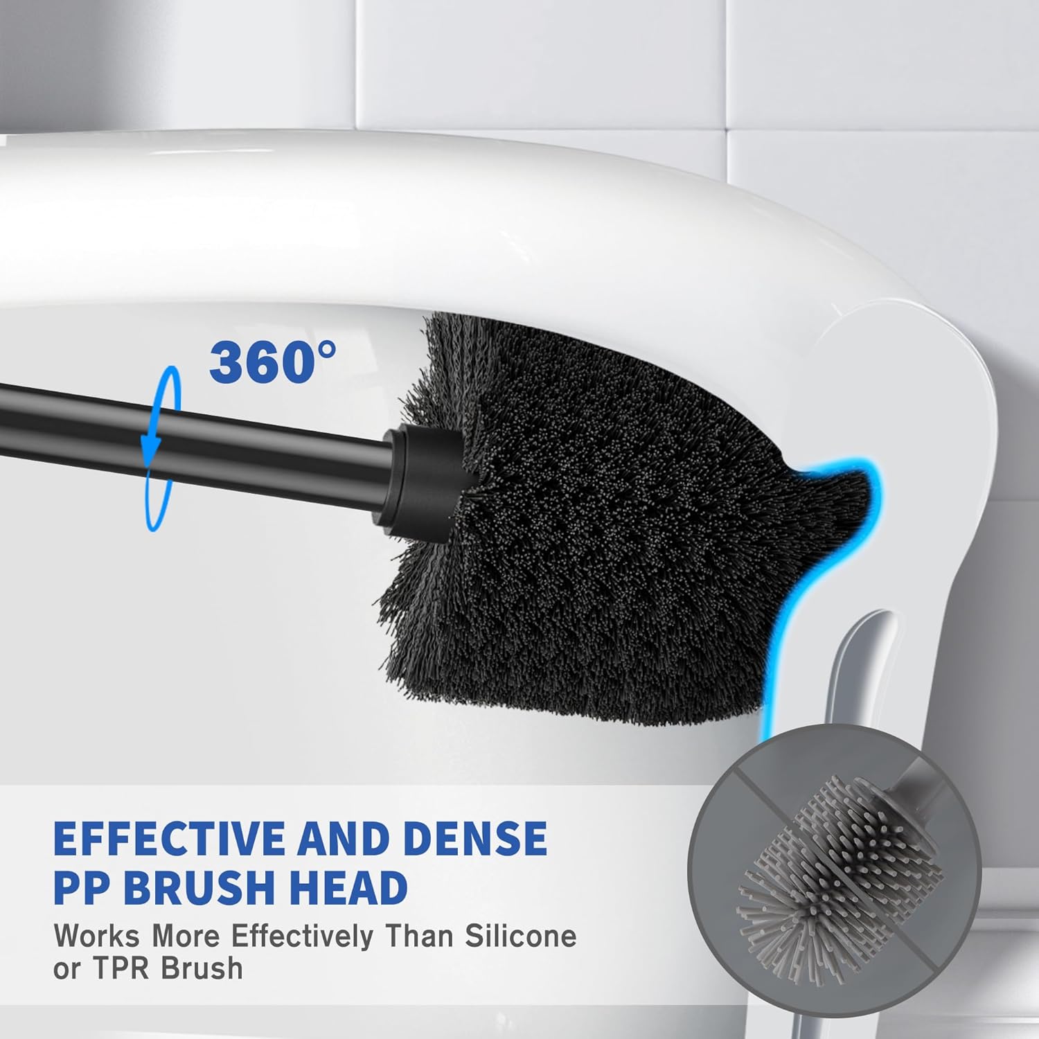 Toilet Brush and Holder, Toilet Brush Stainless Steel, Toilet Bowl Brush for Bathroom Toilet-Ergonomic, Elegant,Durable (Black)