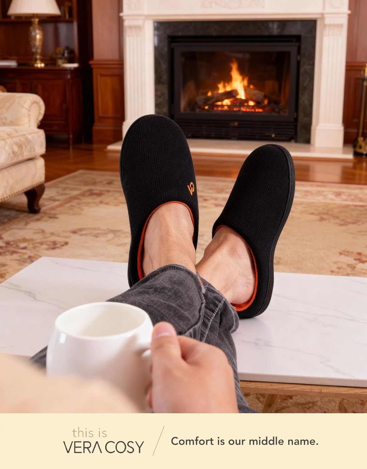 VeraCosy Men's Two-Tone Memory Foam House Slippers Indoor Outdoor Durable Rubber Sole