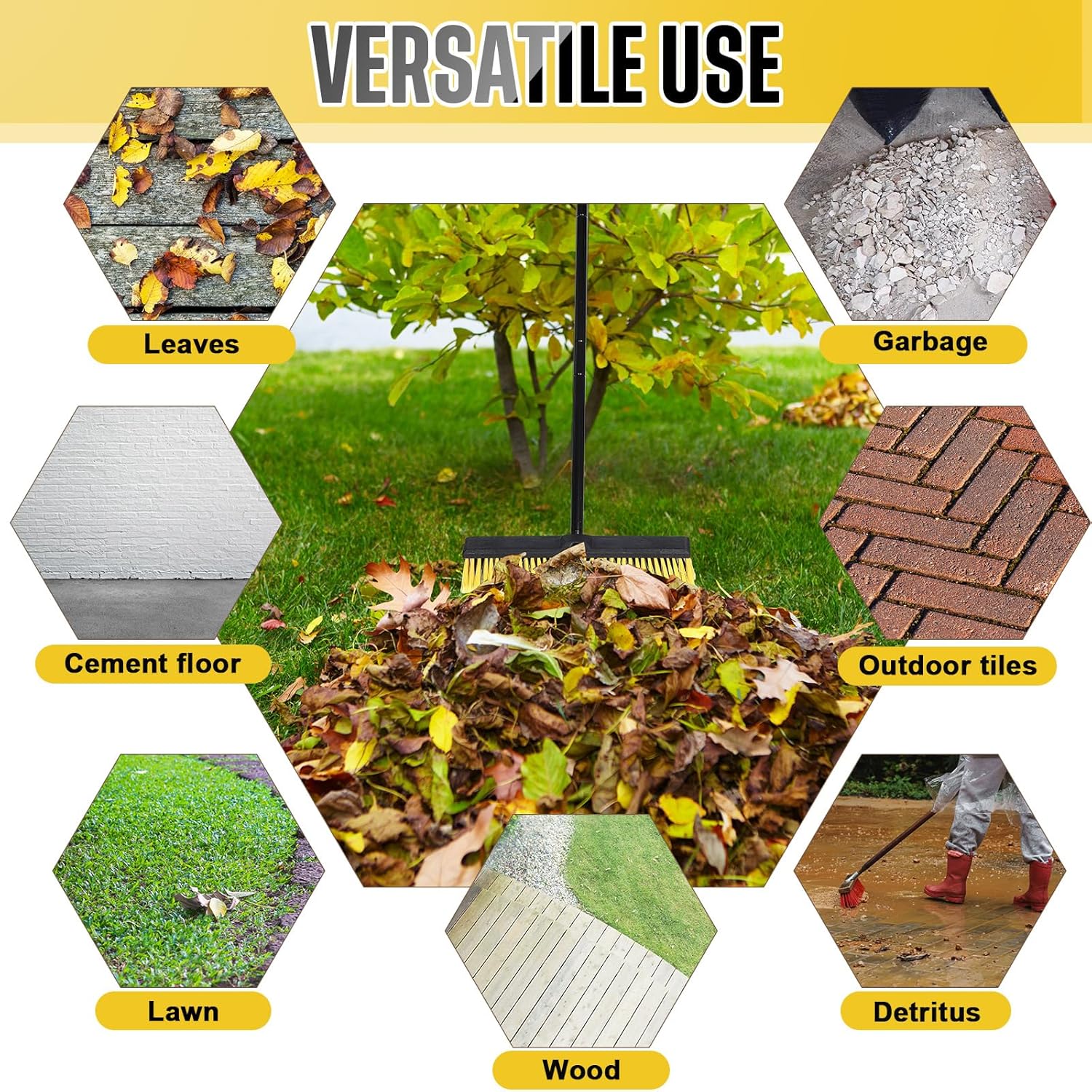 - Effortlessly Sweep Away Dirt and Debris: with 6 layers of stiff bristles, this driveway push broom is appropriate for sweeping heavy things like soil, sand, snow and leaves