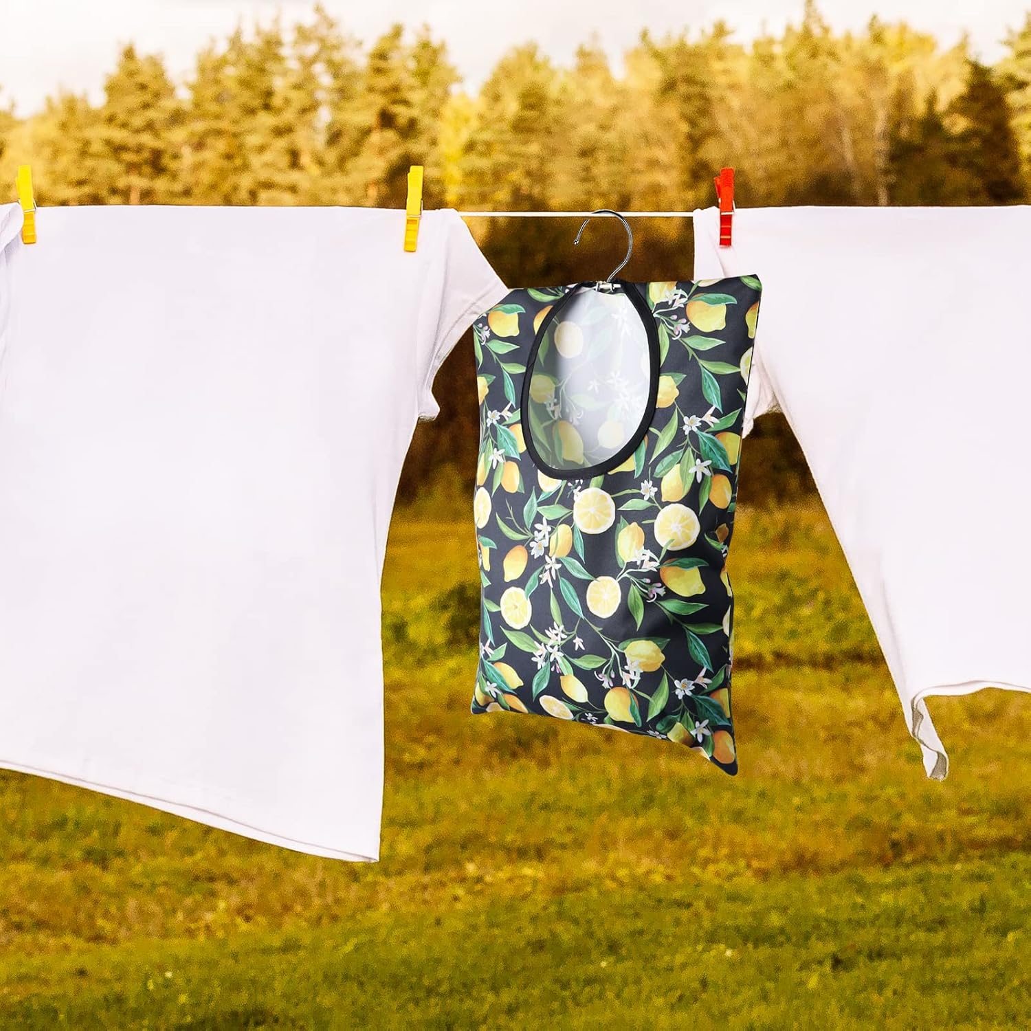 - Lemon Theme: package includes 2 pieces of clothespin bags with hanger in different lemon designs, full of summer feeling, can add charm to your home; Proper quantity can satisfy your different daily use and replacement needs