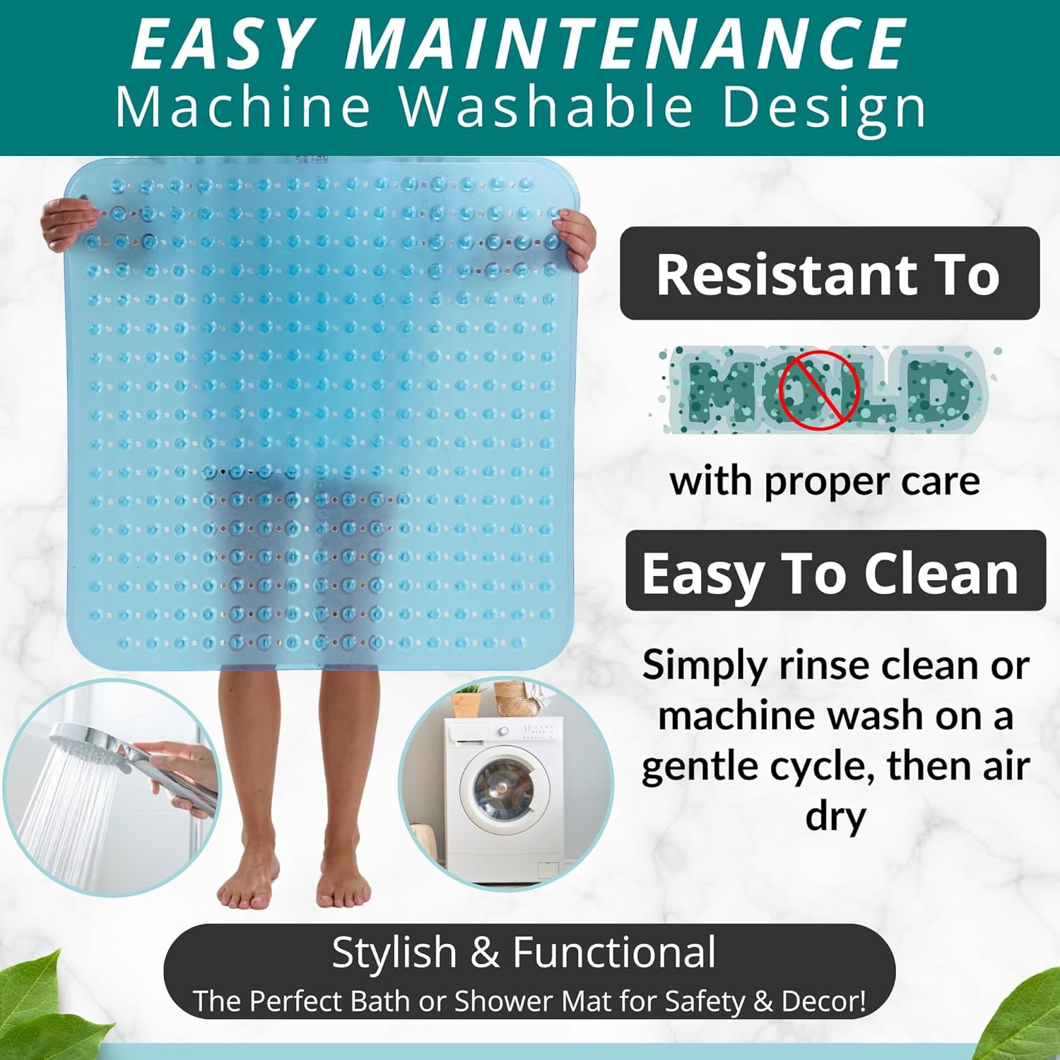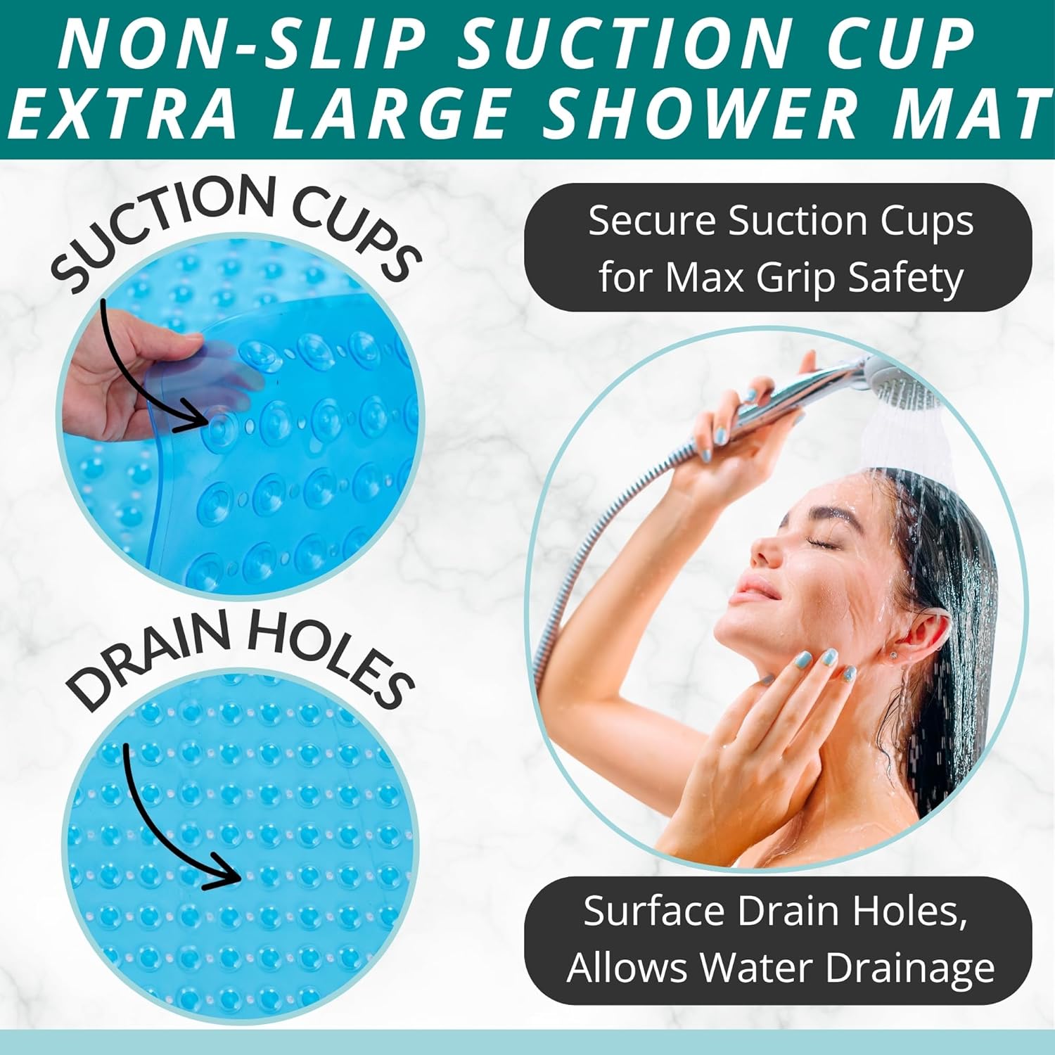 - NON-SLIP MAT enjoy 360-degree protection in your shower; prevent falls with an extra large Square bathroom shower bath mat for larger shower stalls with pliable suction cups for secure sticking capacity to help securely hold the shower mat to shower stall floors for safe anti-slip protection
