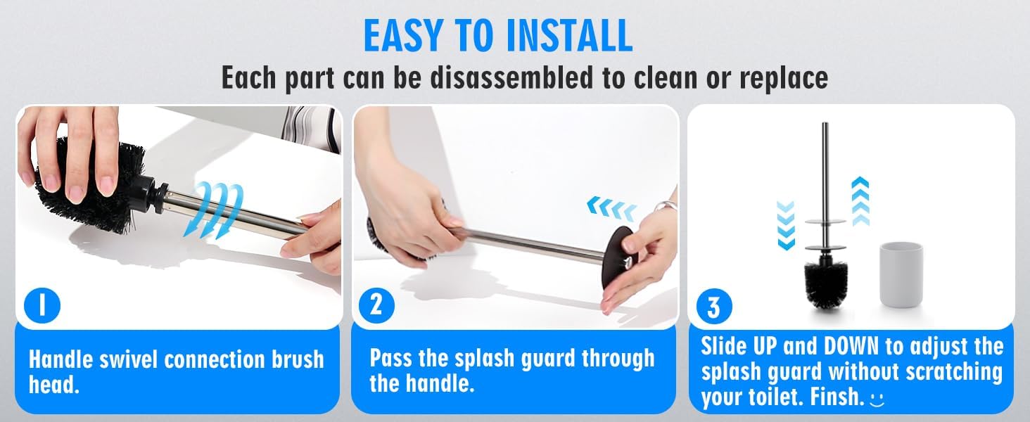 - ๐ ฅ Stainless Steel Handle: The handle of our toilet brush is constructed from high-quality 304 stainless steel. This material ensures excellent corrosion resistance, preventing rust and stain infestation. Enjoy a long-lasting and hygienic cleaning experience.