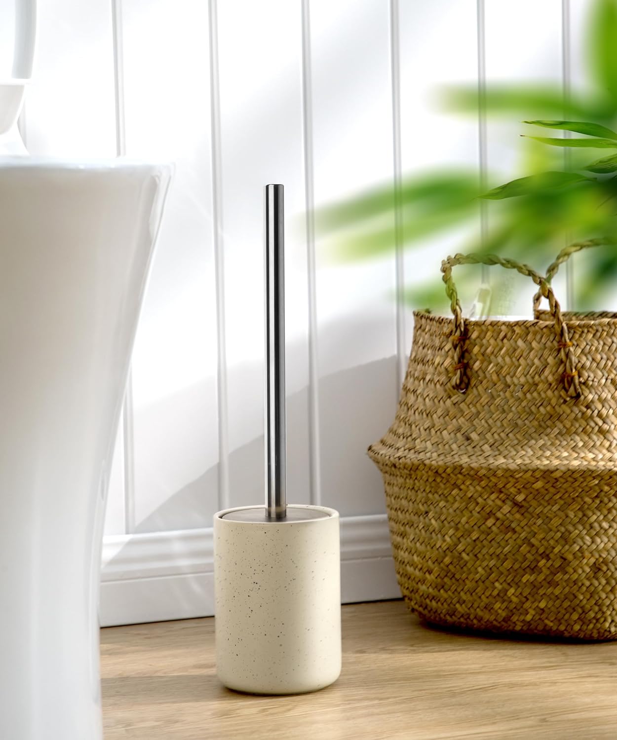 • Quality Construction: Stand made of double-layered durable ceramic; toilet brush made of tough plastic brush head; stainless steel + wooden handle is solid and non-slip.
