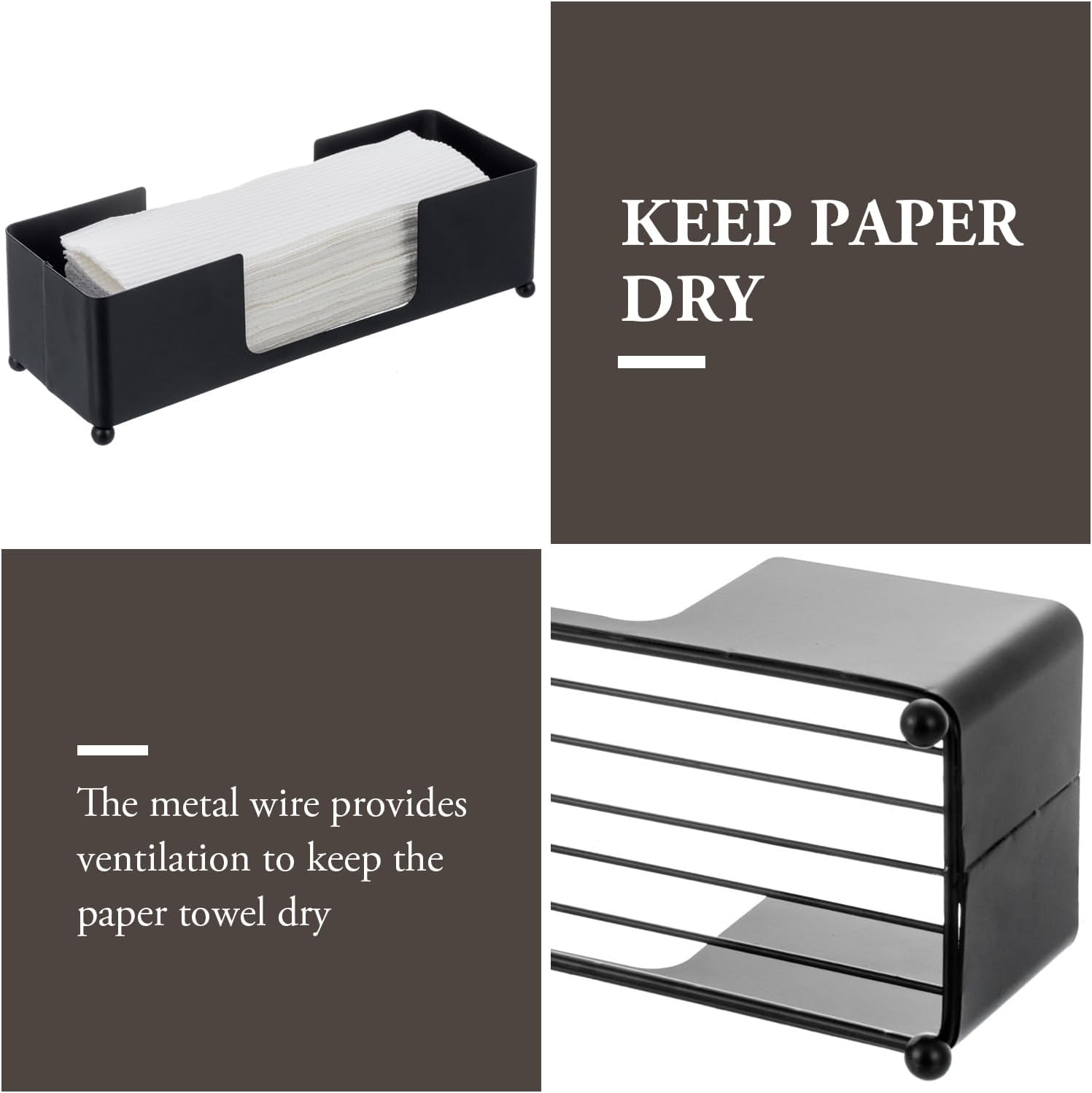 - Modern matte black tone metal tabletop paper towel holder dispenser perfect for stylishly storing paper towels in any home, office, restaurant or retail bathroom setting