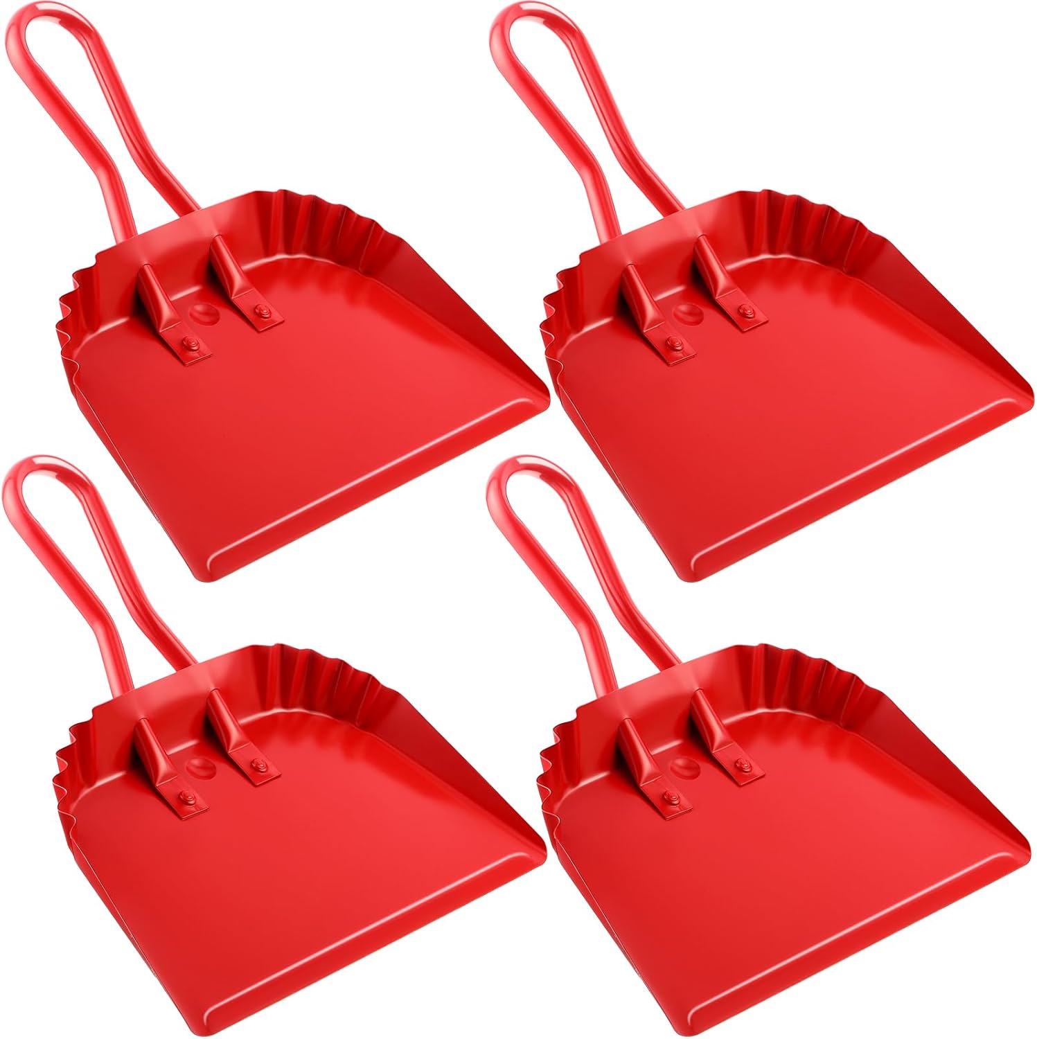 Mumufy 4 Pack 12 inch Heavy Duty Metal Dustpan Large Wide Dust Pans for Household Handheld Wide Scooper and Debris Cleaning Tool Ideal for Home and Commercial Use(Red)