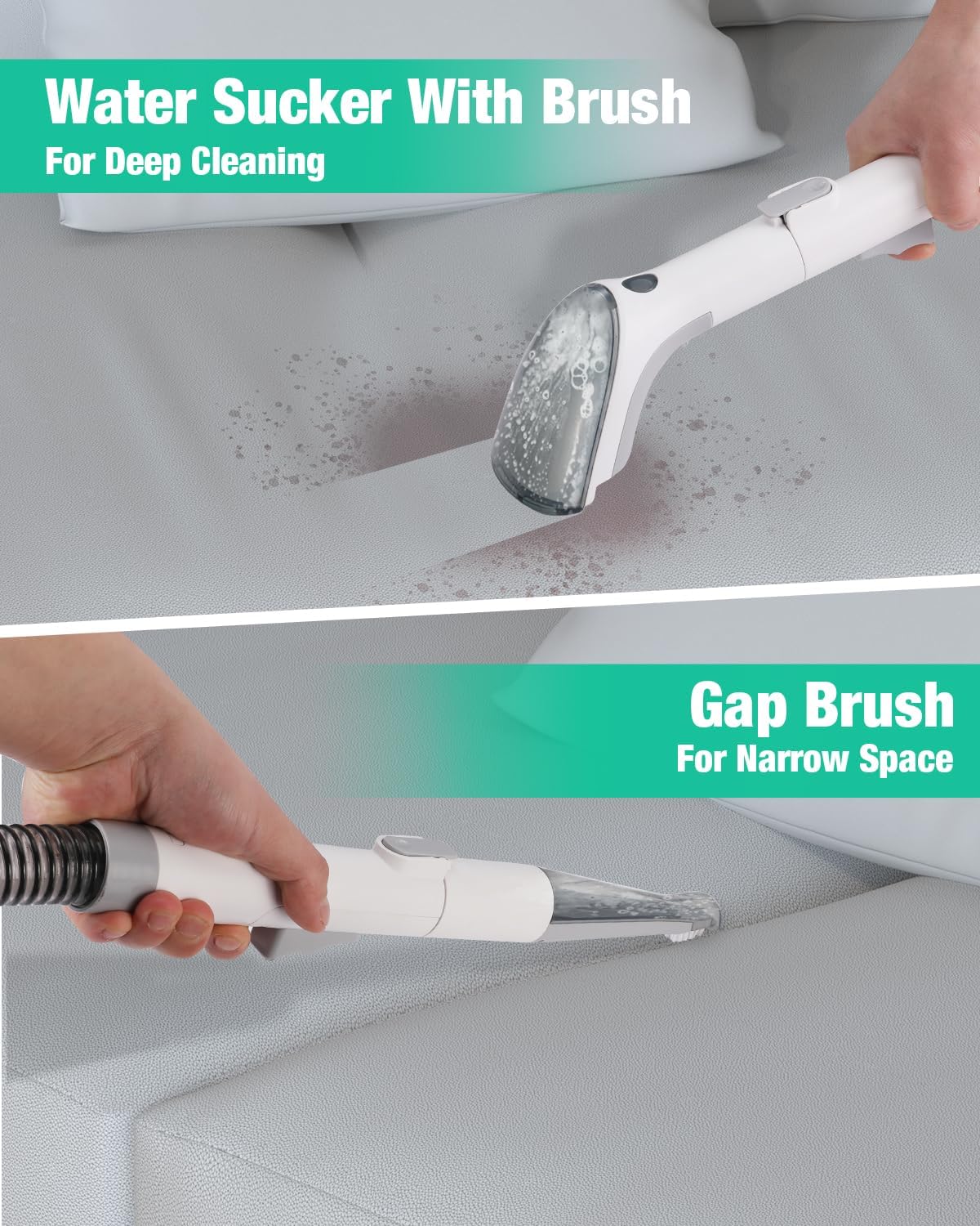 - Double Tank Design for Easy Cleaning: The upholstery cleaner machine stores a 27 oz sewage tank and a 51 oz clean water tank separately and detachable, allowing you to fill, empty, and rinse them with ease. Experience enjoyable, uninterrupted cleaning and maintain a hygienic environment