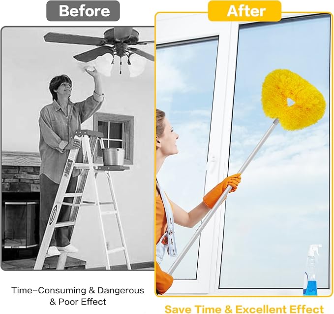 - Versatile Usage: This duster with extension pole is versatile and can be used for various purposes in everyday life including cleaning household appliances, fans, cars, blinds, bookshelves as well as hard-to-reach corners. It efficiently removes dirt from gaps and gets rid of spider webs or airborne dust.