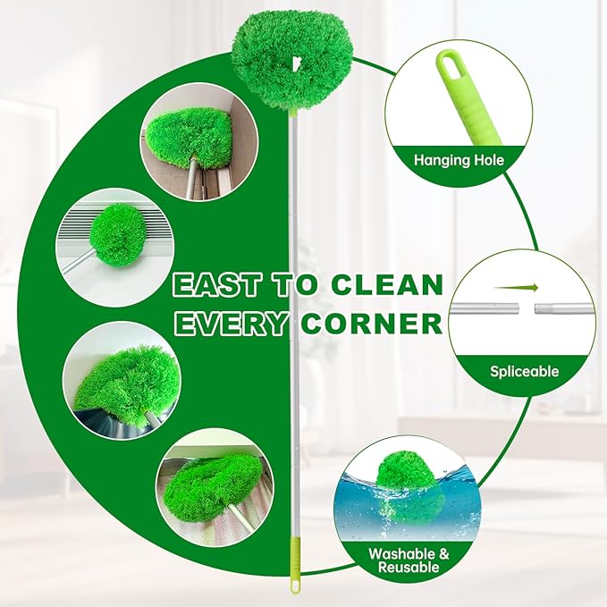 - Versatile Usage: This duster with extension pole is versatile and can be used for various purposes in everyday life including cleaning household appliances, fans, cars, blinds, bookshelves as well as hard-to-reach corners. It efficiently removes dirt from gaps and gets rid of spider webs or airborne dust.