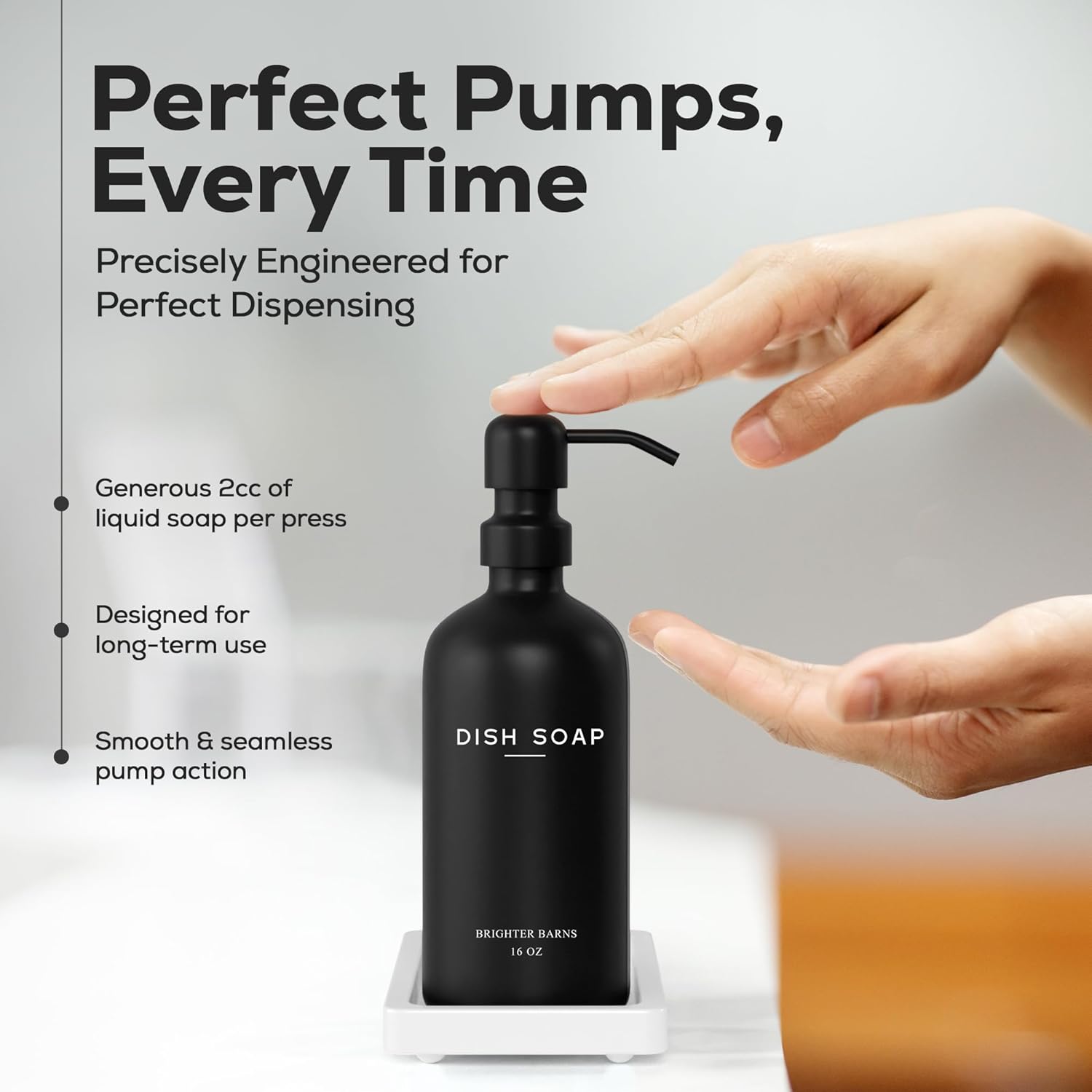 - AMERICAN DESIGN, UNCOMPROMISING QUALITY - Crafted with meticulous attention to detail, our glass soap dispenser with pump set features 2 robust 16oz glass bottles, corrosion-proof 304G stainless steel pumps, and a stain-resistant ceramic tray. All designed in the USA to provide unbeatable quality and enduring style that you can trust.