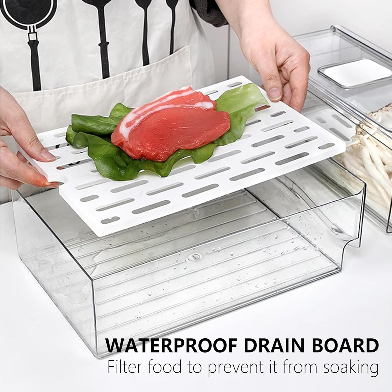 2 Pack Large Capacity Fruit Storage Containers for Fridge with Drain Board, Stackable Refrigerator Organizers Drawer,Reusable Food Storage Containers for Drinks, Meat,Vegetable,Produce,Fruit