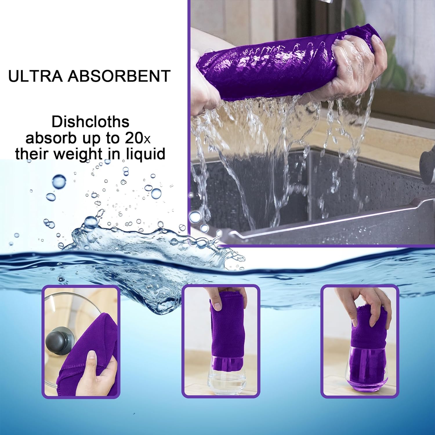 kimteny 13x28 Inches Kitchen Cloth Dish Towels, 400 GSM Premium Dishcloths, Super Absorbent Coral Velvet Microfiber Cleaning Cloths, Fast Drying Rags for Washing Dishes (8 Pack, Purple)