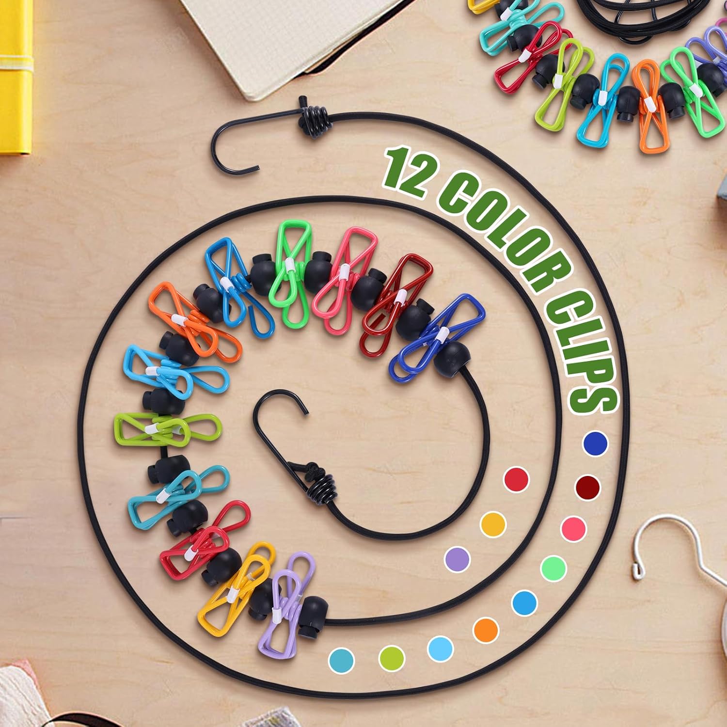 - [Innovative Design] The travel clothesline features 12 colorful clothesline clamps and 13 windproof, non-slip clamps, all designed with a positioning bead. Our sturdy elastic rope supports heavy clothing more effectively than other clotheslines.