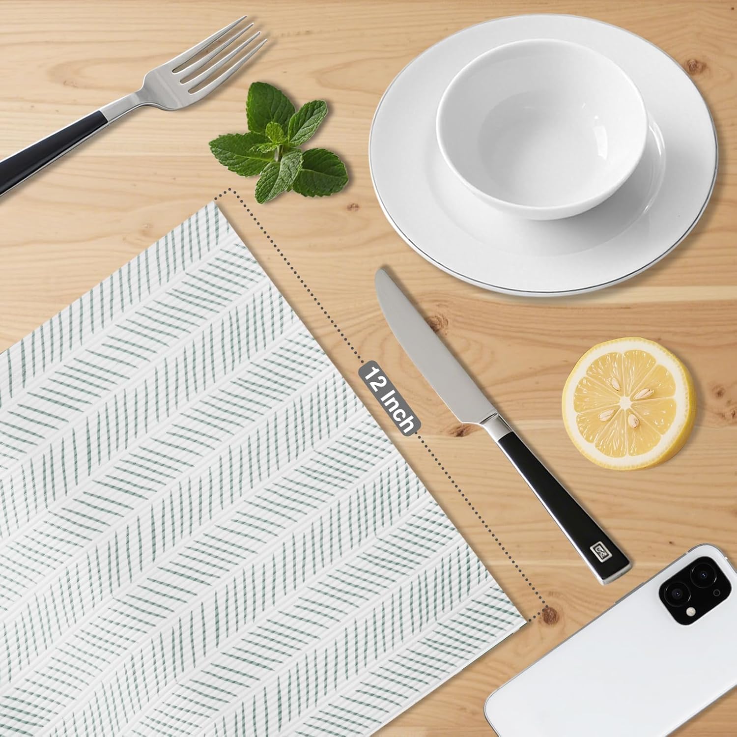 Glotoch Non Adhesive Shelf Liners for Kithchen Cabinets,Non Slip Waterproof Drawer Liners for Dresser, Liner, Fridge, Wire Shelving,Pantry,Heavy Duty, White and Green Herringbone 12X60 Inch