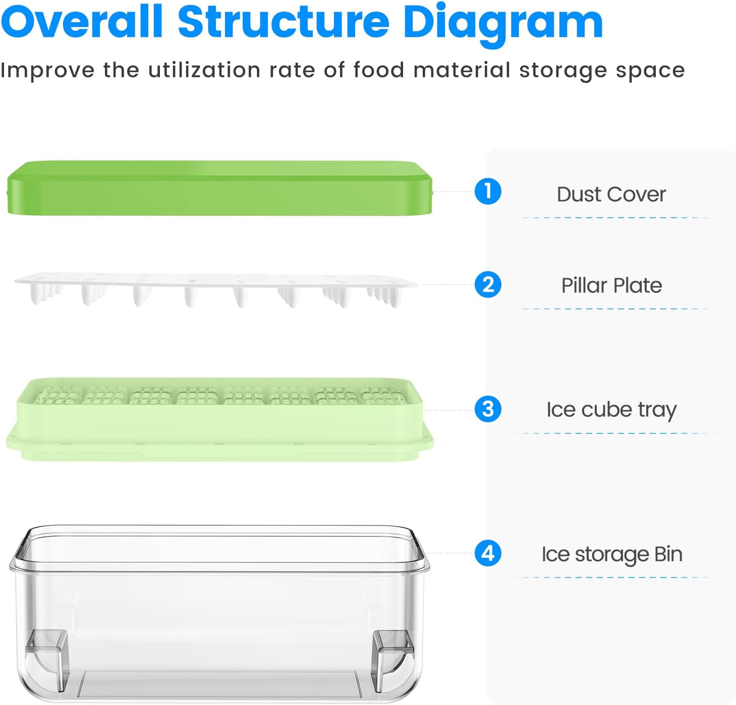 - Food Grade Material & BPA Free:This ice trays for freezer with lid and bin are made of food grade PP material, which is safe and can be frozen and used repeatedly for a long time.The ice cube tray is NOT DISHWASHER SAFE