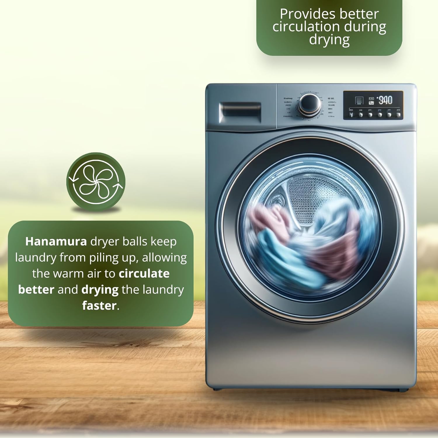 Hanamura 6 XXL Wool Dryer Balls - TÜV Tested 100% New Zealand Wool Balls for Dryer - Energy Saving & Baby-Safe Reusable Dryer Balls for Laundry - Non-Toxic Fabric Softener for WAD Free Laundry
