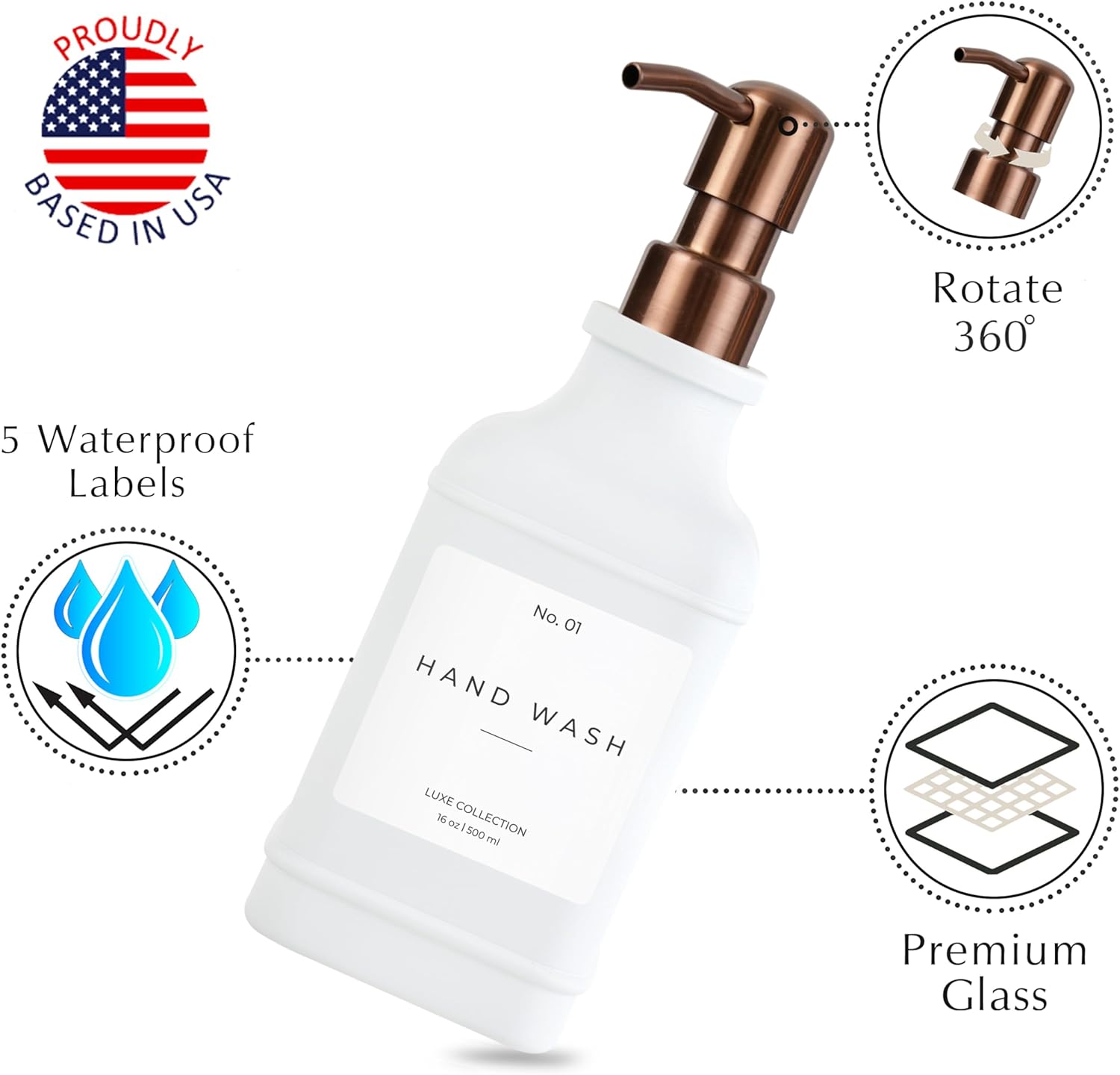 - ✅ PREMIUM QUALITY THAT LASTS: Designed to complement any space, these 16 oz glass soap dispensers are perfect for hand soap, dish soap, lotion, or shampoo. Ideal for sinks in your kitchen, bathroom, laundry room, or guest bath. Unlike dispensers that peel or break down, our bottles are made from thick, durable glass that resists wear and looks elegant on any countertop.
