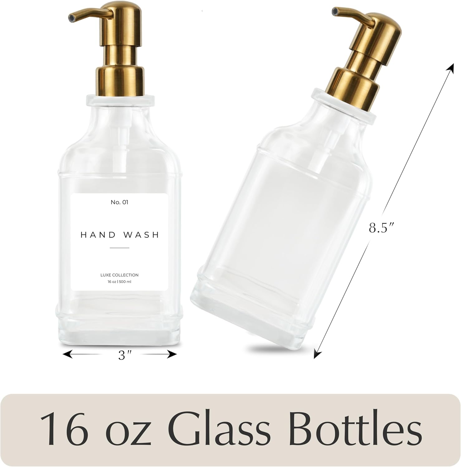 - ✅ PREMIUM QUALITY THAT LASTS: Designed to complement any space, these 16 oz glass soap dispensers are perfect for hand soap, dish soap, lotion, or shampoo. Ideal for sinks in your kitchen, bathroom, laundry room, or guest bath. Unlike dispensers that peel or break down, our bottles are made from thick, durable glass that resists wear and looks elegant on any countertop.