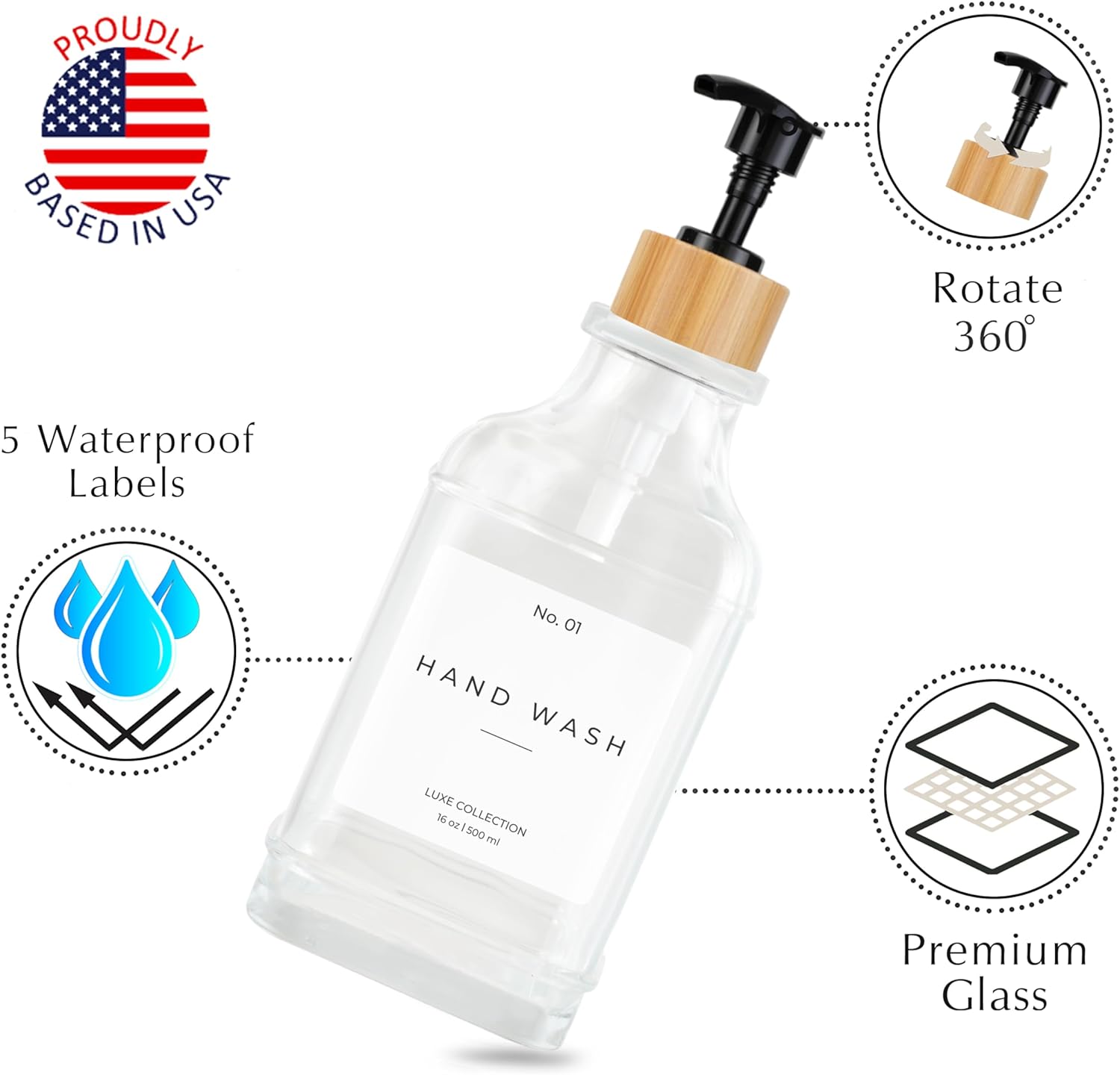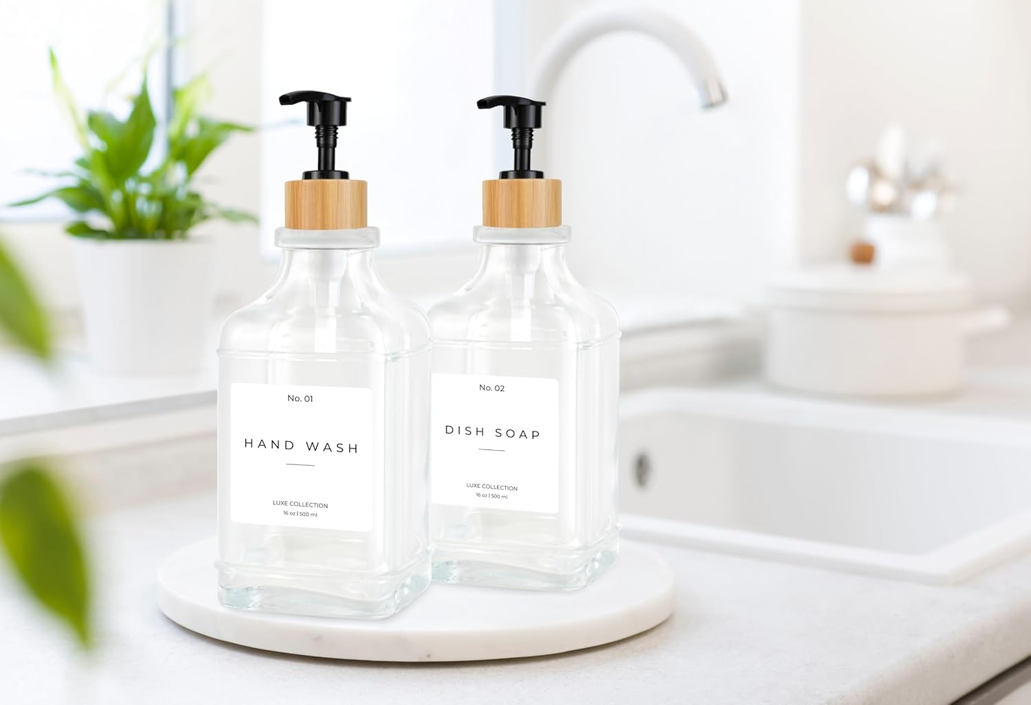 - ✅ PREMIUM QUALITY THAT LASTS: Designed to complement any space, these 16 oz glass soap dispensers are perfect for hand soap, dish soap, lotion, or shampoo. Ideal for sinks in your kitchen, bathroom, laundry room, or guest bath. Unlike dispensers that peel or break down, our bottles are made from thick, durable glass that resists wear and looks elegant on any countertop.