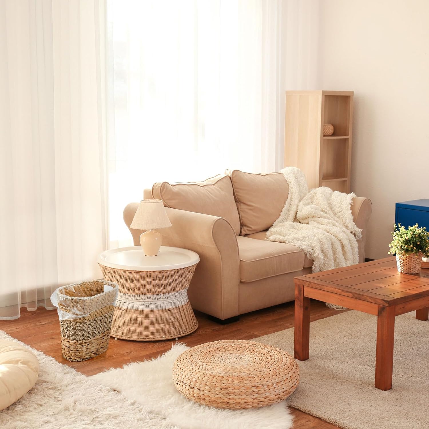 - Convenient Package: the set includes 2 wicker trash baskets along with a roll of 50 garbage bags; This thoughtful combination provides a ready to use solution for your waste management requirements at different spots in your home or office