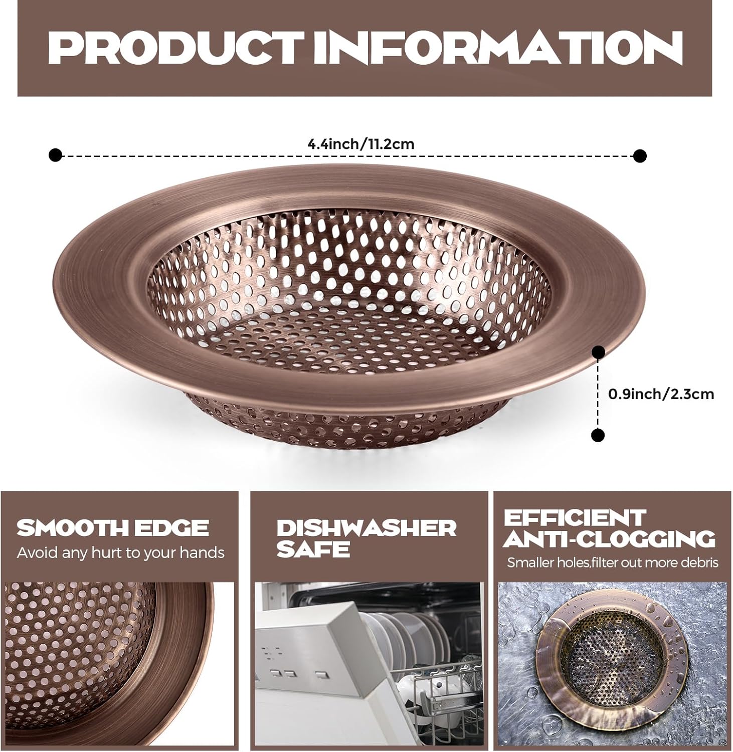 Retisee 2 Pcs Sink Strainer Stainless Steel Kitchen Sink Drain Strainer Basket Cover Mesh Hair Food Catcher, Large Wide Rim of 4.4 Diameter(Red Bronze)