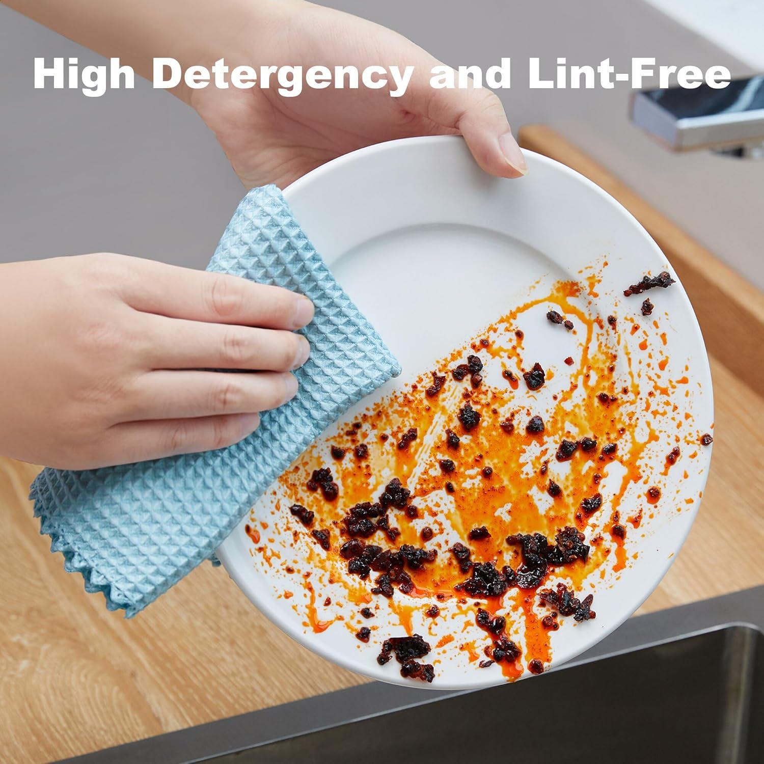 JOYMOOP Microfiber Cleaning Cloth, Reusable Absorbent Microfiber Cleaning Cloths, Kitchen Dish Cloth Waffle Weave 5 Pack, Mixed Color, 9.8×9.8inch
