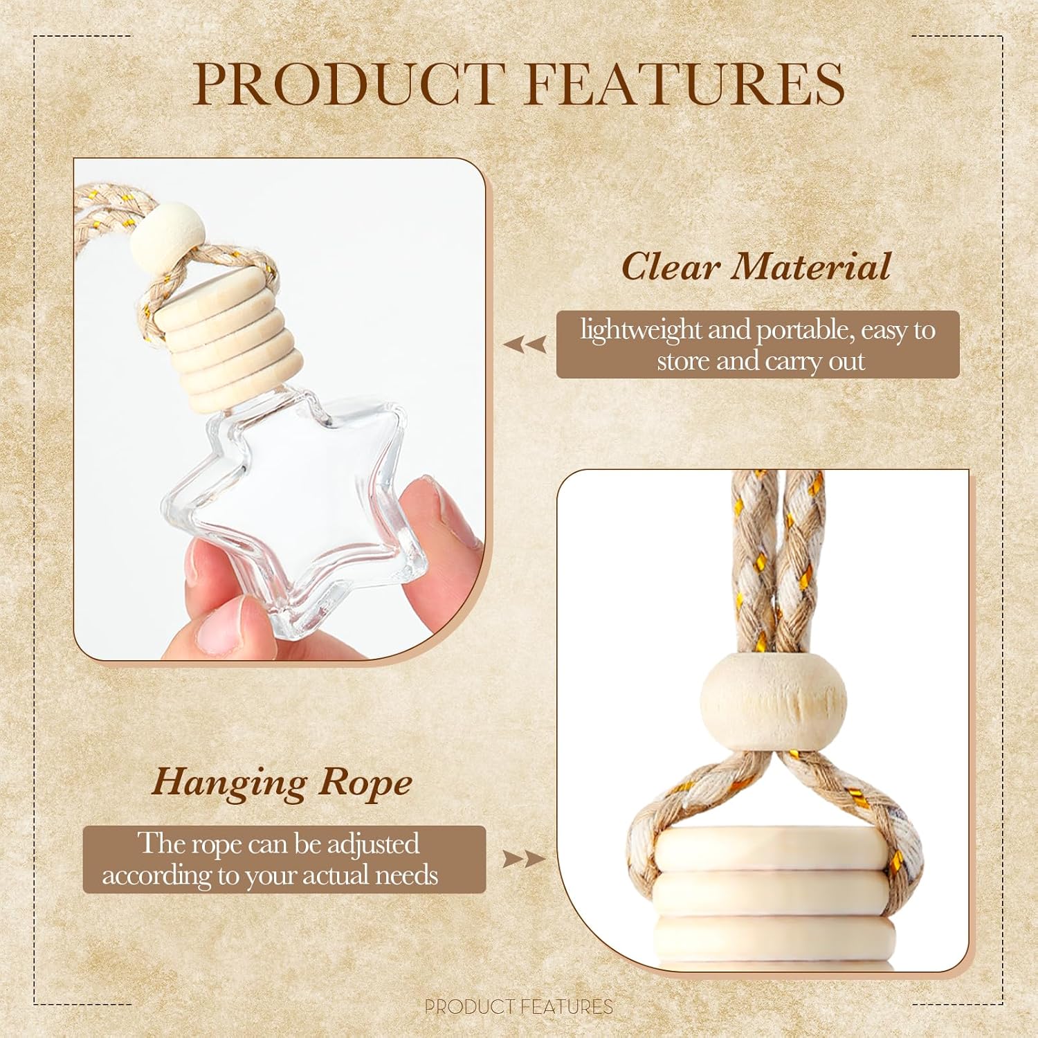 - Ideal Air Freshener: the car perfume bottle is featured with a star shape, you can shake the bottle after adding perfume essential oil or air freshener (not included), to saturate the cap and help the scent flow out and spread better