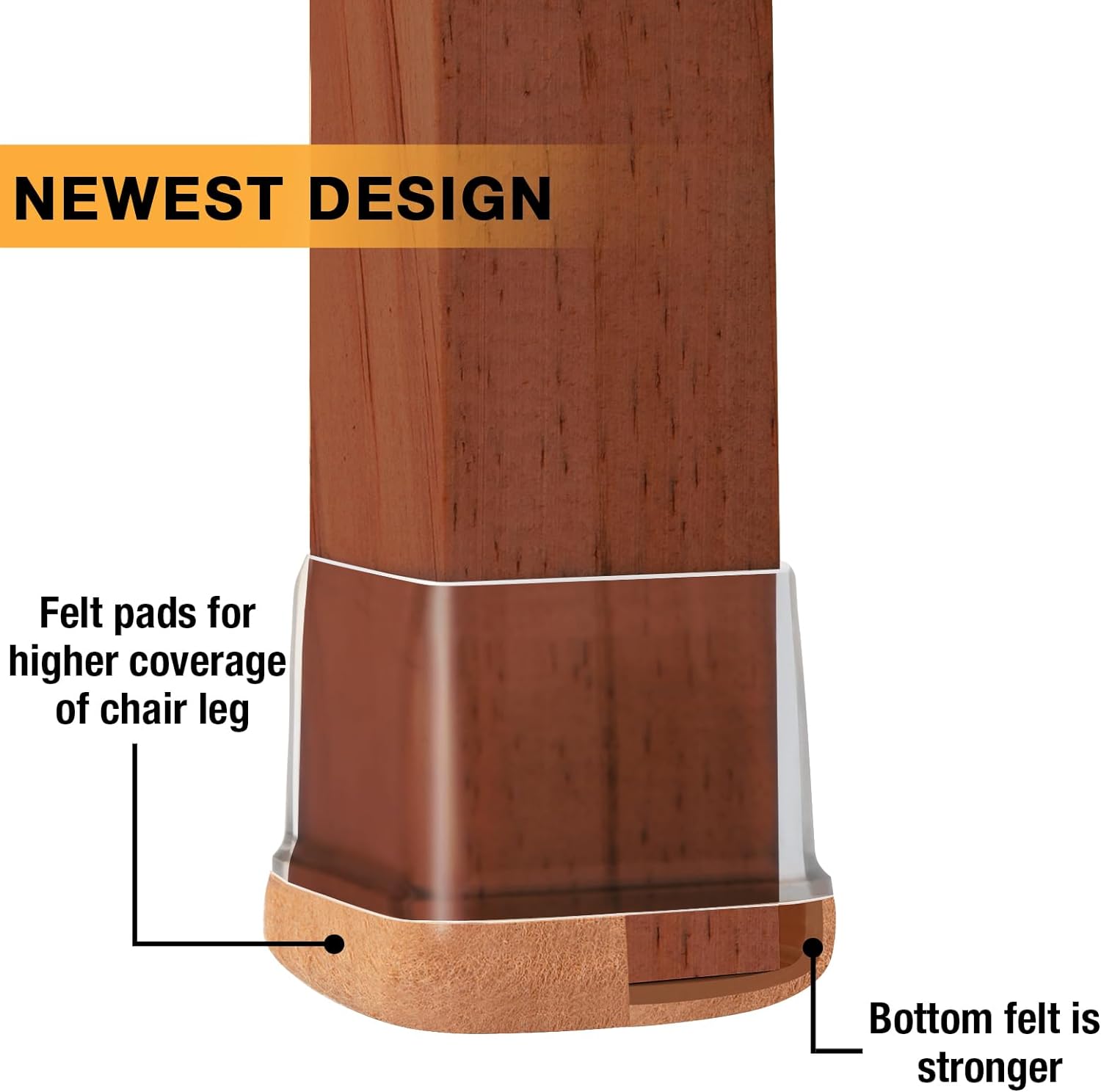 - 【Upgrade New Design】: 360° full felt pad bottom wrapped, which helps the felt bottom be able to touch the floor at any angle, preventing scratching the floor. Our chair leg floor protectors do not use gel. The bottom felt pad and the silicone chair leg floor protectors are integrated with a high-pressure machine to ensure that they will never fall off.