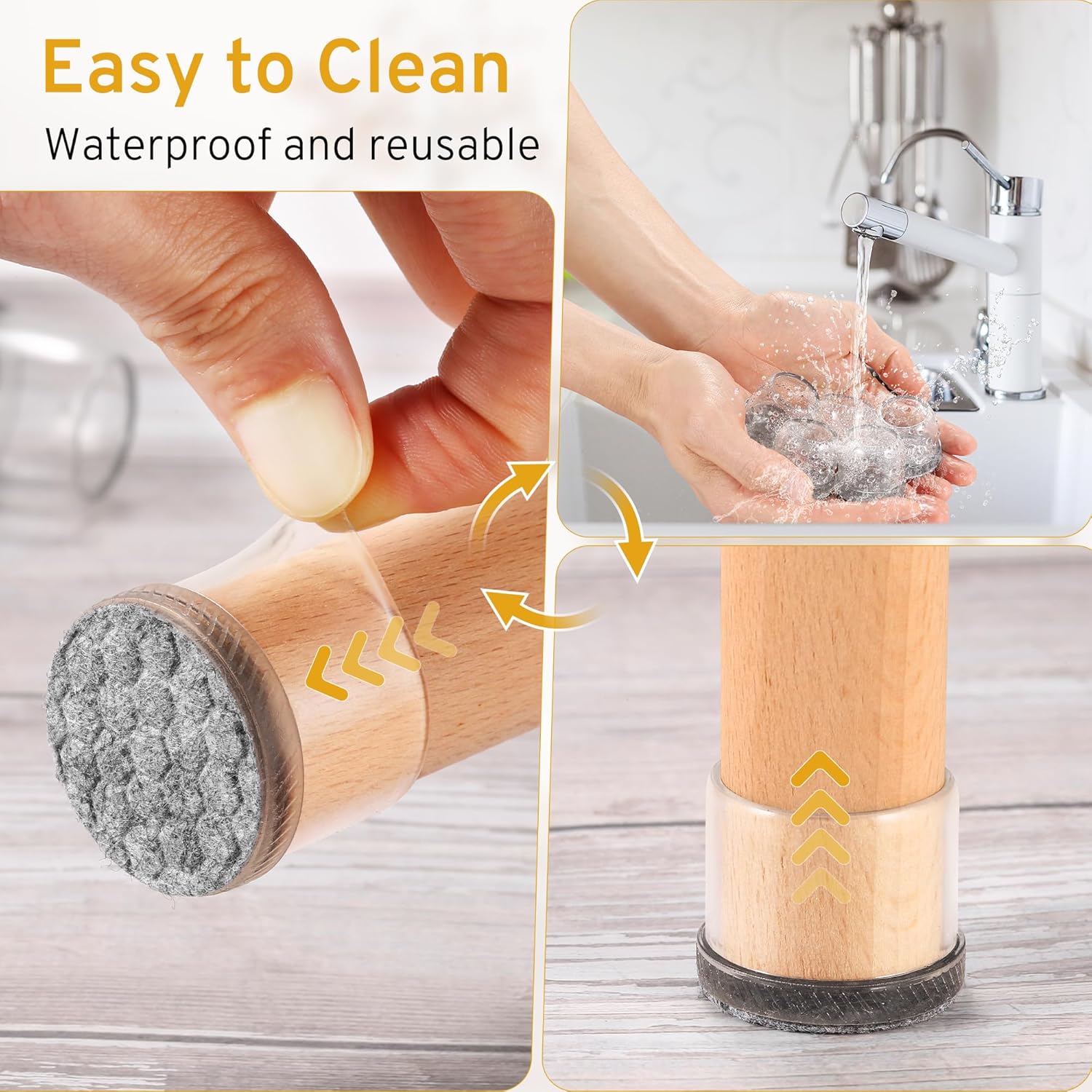 - ✅【Premium Quality Material】We would like to offer top-tier quality chair leg floor protectors at the most reasonable price. So we choose the premium quality silicone material. Our floor protectors for chairs are more clear and have higher thickness than most chair leg covers on the market, which are more durable and flexible, ensuring the floor protectors won't tear when stretched.