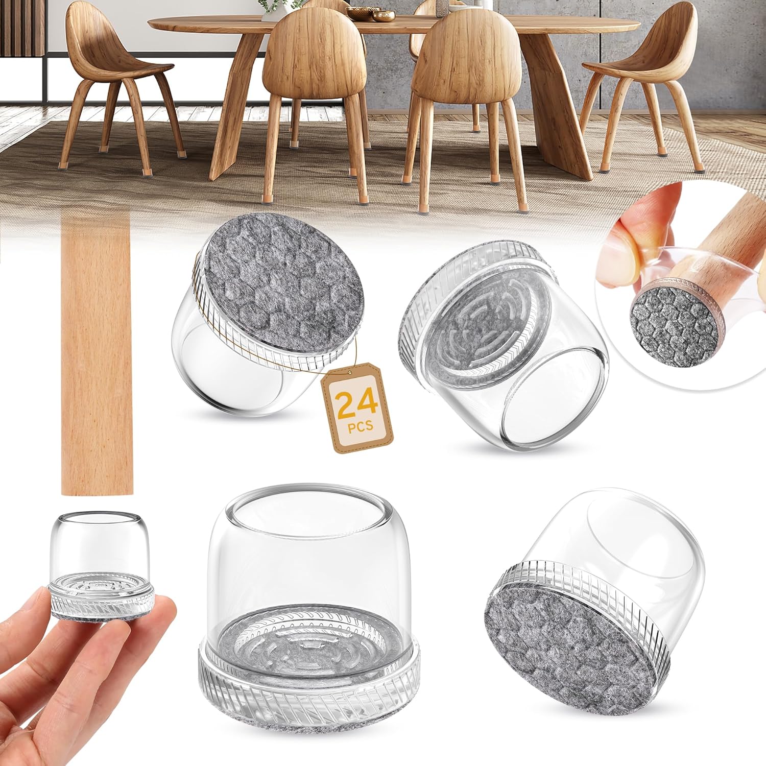 24PCS Extra Small Chair Leg Floor Protectors, Furniture Sliders, Chair Leg Protectors for Hardwood Floors, Non-Slip Felt Furniture Pads, Round Silicone Cap Covers to Protect Floors(Fit 0.5" - 0.75")