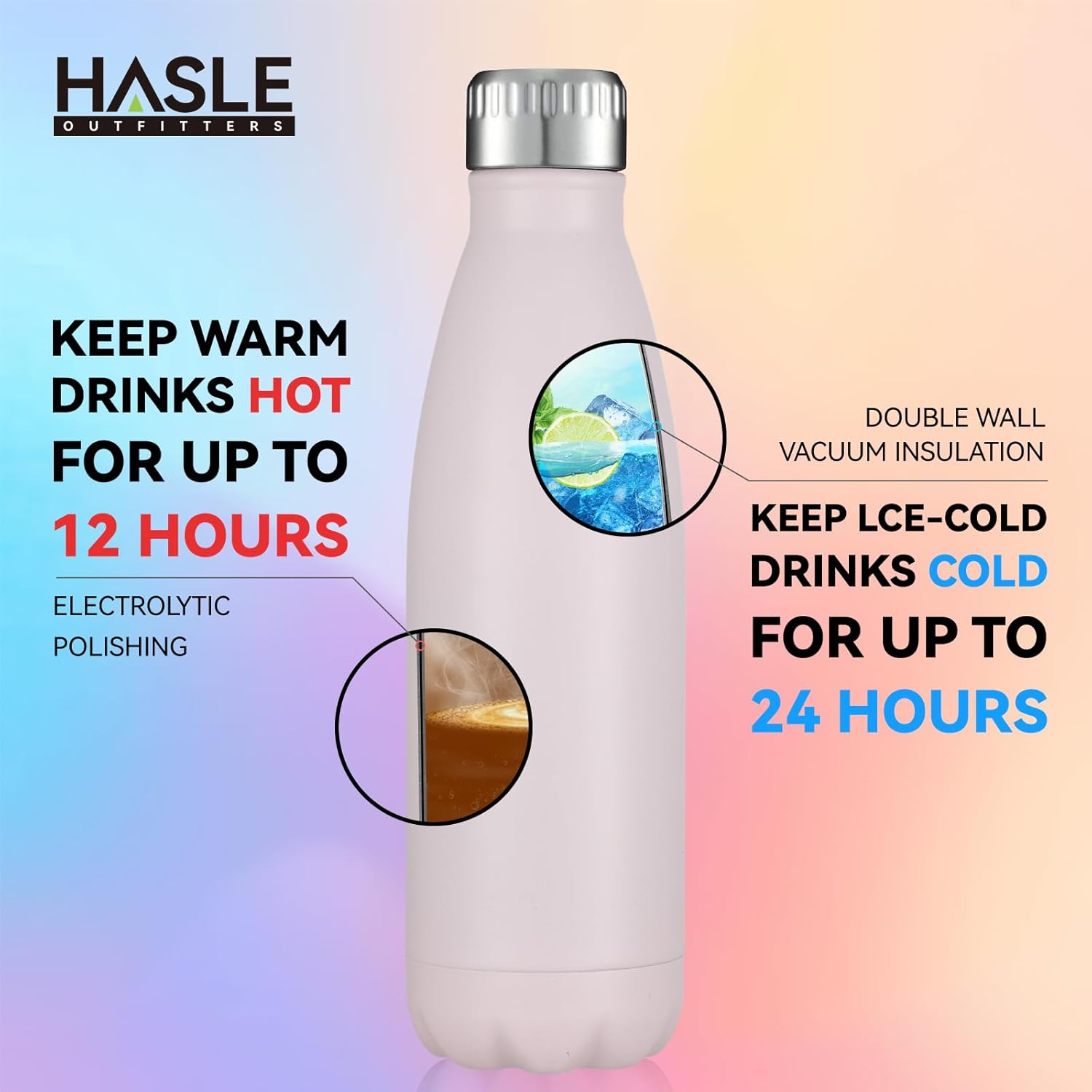 HASLE OUTFITTERS 17oz Stainless Steel Water Bottles Bulk, Vacuum Insulated Water Bottles Double Walled Powder Coated Reusable Metal Sports Water Bottles Keep Drinks Hot and Cold,Pink, 8Packs