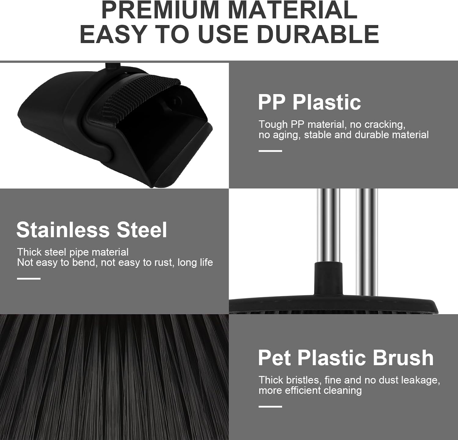 - [Upgraded Broom and Dustpan Kit] Elevate your cleaning routine with this improved combination, a versatile and valuable addition to your home cleaning arsenal. Boasting a robust stainless steel handle and a spacious dustpan, this kit excels at efficient cleaning. The pliable rubber lip creates a secure seal between the floor and dustpan, ensuring a clean sweep without any mess. Sweep confidently with this broom and dustpan duo, crafted to eliminate ash spillage.