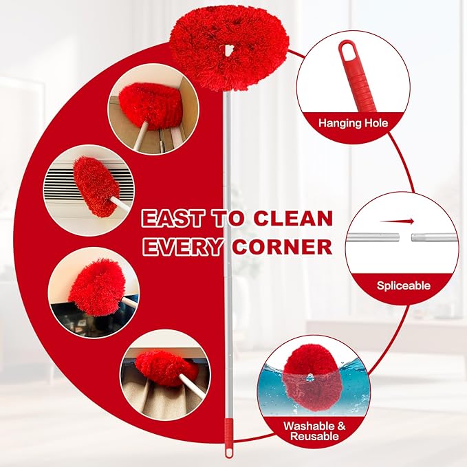 - Versatile Usage: This duster with extension pole is versatile and can be used for various purposes in everyday life including cleaning household appliances, fans, cars, blinds, bookshelves as well as hard-to-reach corners. It efficiently removes dirt from gaps and gets rid of spider webs or airborne dust.