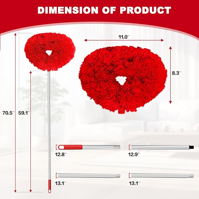 - Extendable length: With its retractable rod, the ceiling fan cleaner allows for adjustable lengths from approximately 13 to 49.7 inch, making it easy to clean ceiling fans without the need for chairs or ladders.