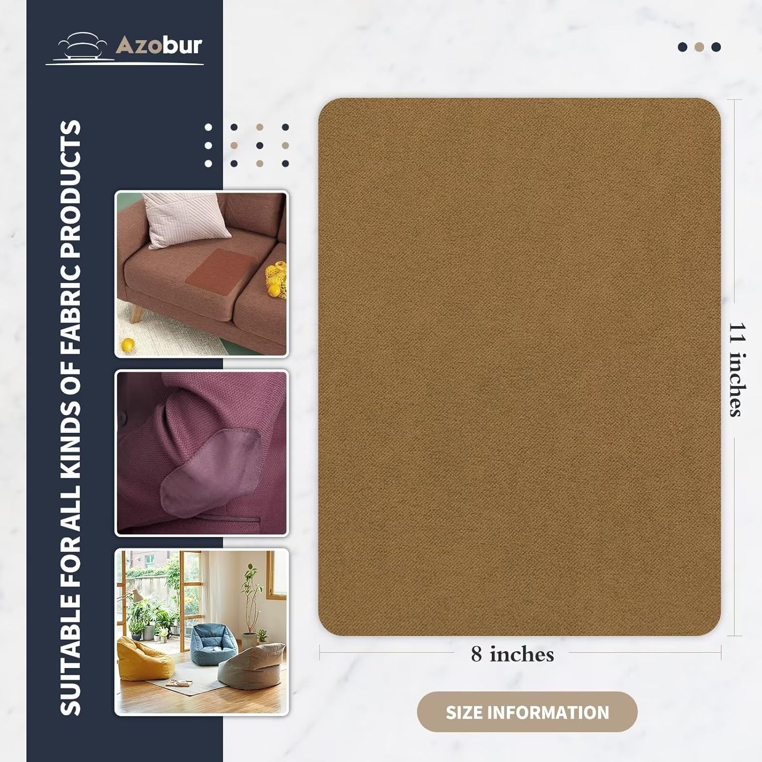 Azobur Velvet Patch,Self-Adhesive Rectangular Flannel Fabric Patch,Multicolor Available Anti Scratch Velvet 8X11 Inch Peel and Stick for Sofas, Automotive Interior, Handbags,and Pillow (Brown)