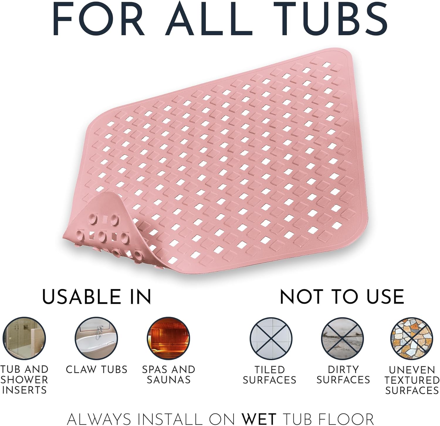 - For Kids & Adults - For All! - The non-slip shower mat are perfect for everyone, especially kids, babies, the elderly, pregnant women and even pets: The anti slip shower is latex free, odorless and is free from BPA, phthalates and softeners!