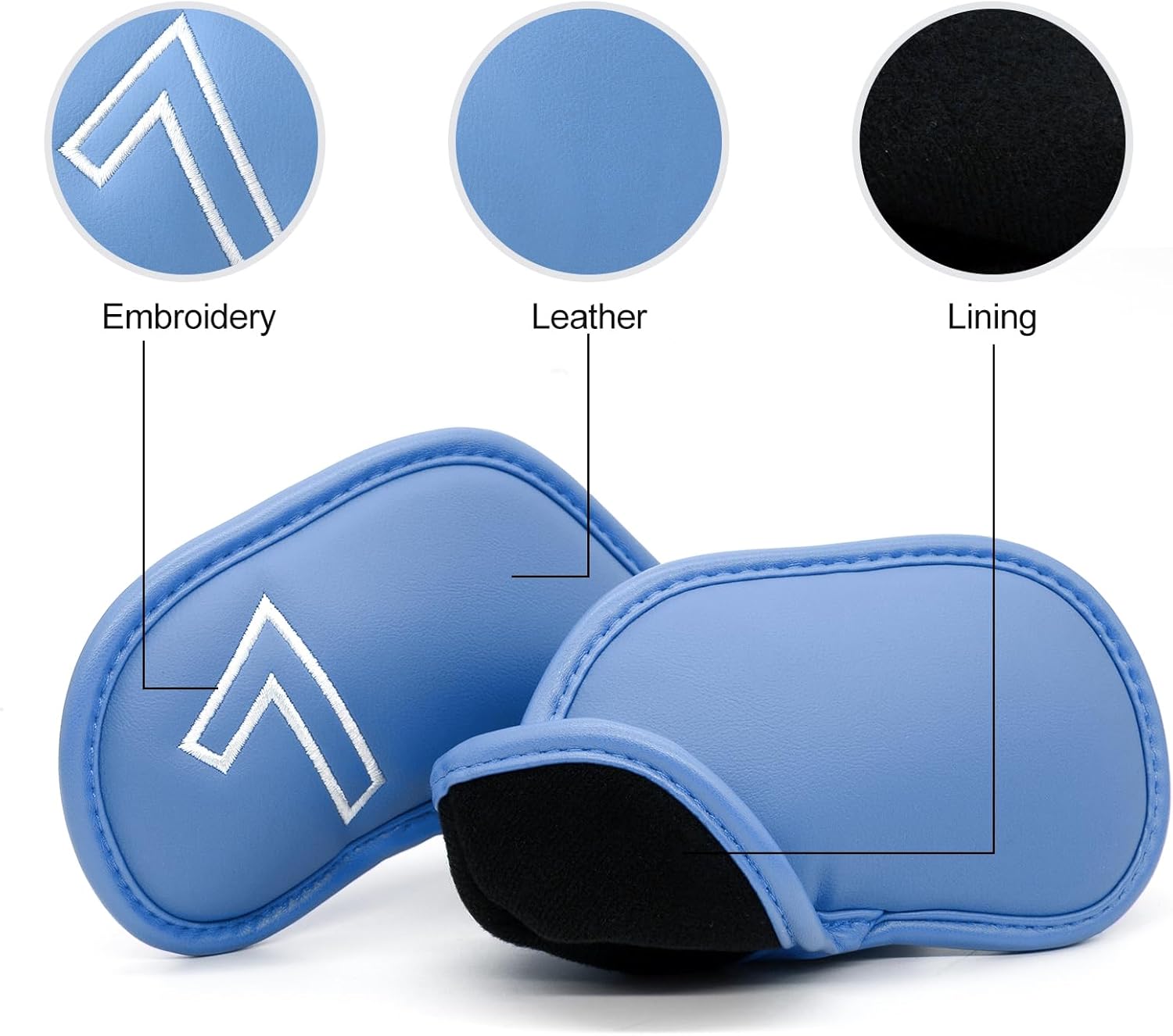 - ☑【High Quality Synthetic Leather】:The golf iron head cover is made of extra thick 3 layers of material to provide strong protection for your iron golf clubs. From the outside to the inside are synthetic leather, sponge middle layer, and inner liner. The Monterra Golf Iron Head Cover provides the best way to protect your valuable golf club head.