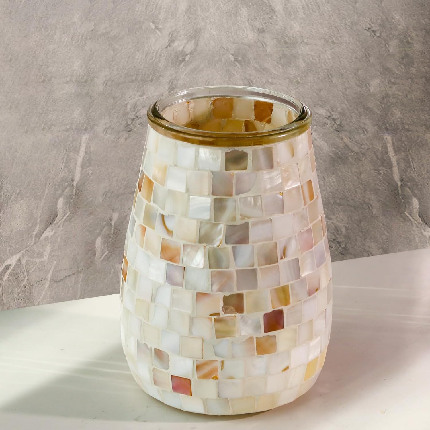 - Elegant Mosaic Design: The ocean toilet bowl brush and holder set is an essential addition to your bathroom accessories. The set is crafted with natural seashells embedded in the glass brush holder, adding a unique touch of sophistication and a hint of coastal charm to your bathroom décor. The sleek and modern design seamlessly integrates with any bathroom style, enhancing the overall aesthetic of your space while providing practicality