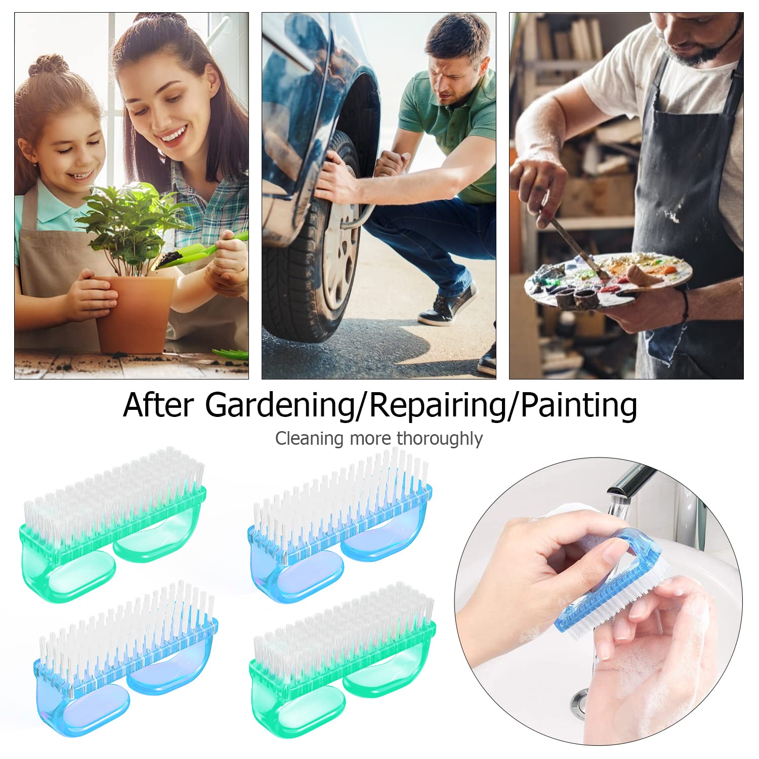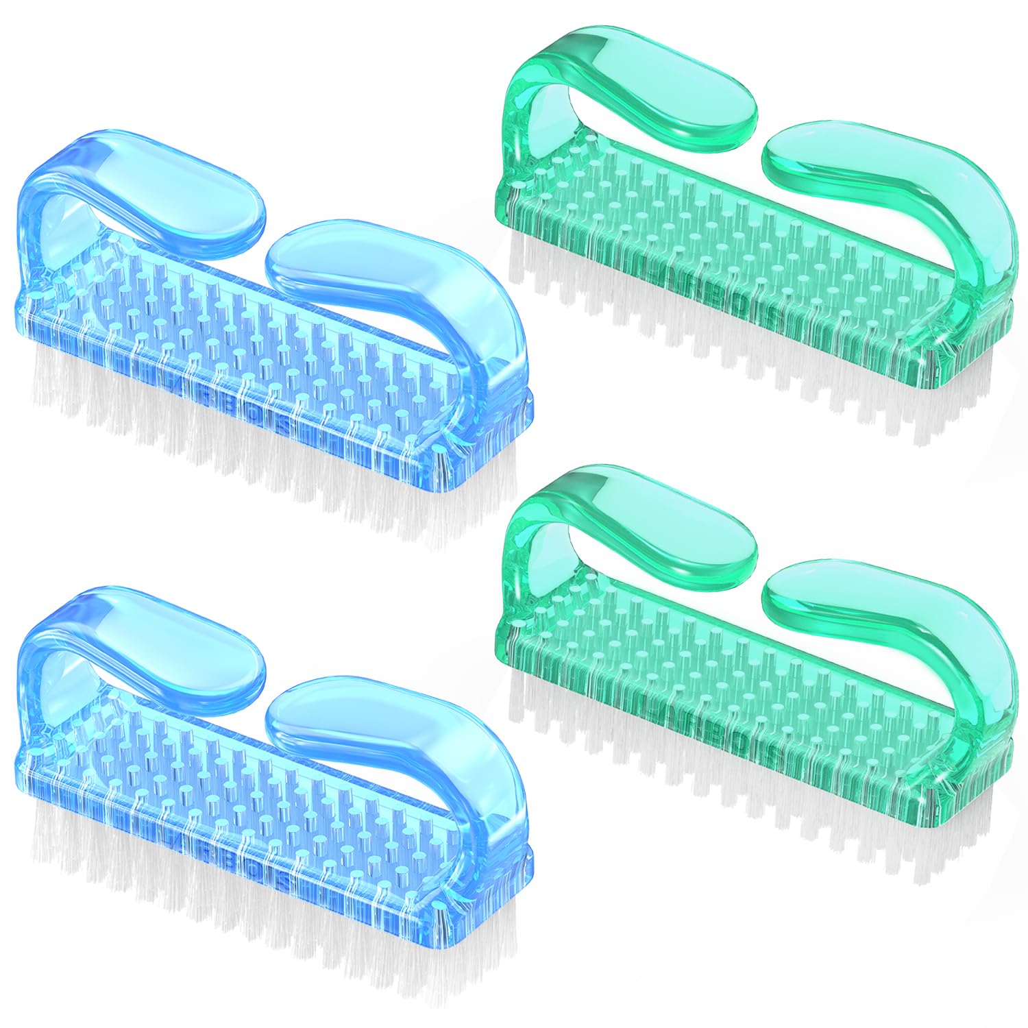 Handle Grip Nail Brush, Hand Fingernail Brush Cleaner Scrubbing Kit Pedicure for Toes and Nails Men Women (4 Pack)