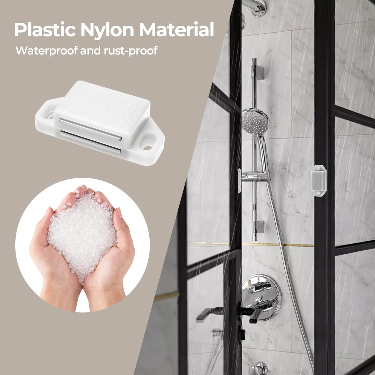 - Long-Lasting Durability: The cabinet door magnetic catch is made of High quality nylon material, against corrosion, cracking and wet, which ensure its use in a wet environment. So the magnet cupboard closures are durable and long-lasting than that made of other materials.
