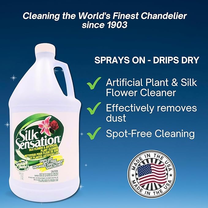 - EASY & CONVENIENT HOME CLEANING ESSENTIALS: A must-have for artificial plant & flower lovers, this silk spray sparkle cleaner keeps your faux botanicals looking fresh and dust-free all year-round! INCLUDES: 110% Money Back Guarantee Guide + (128 oz) Silk Sensation Silk Plant Cleaner Spray No Wipe - Made in USA.