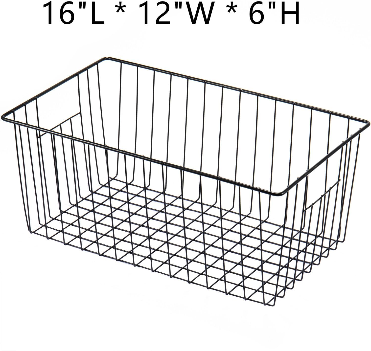 - Dimensions - 16in(L) x 12in(W) x 6in(H). These freezer basket bins are especially designed for upright freezers. For bigger 16-21 cu. ft freezer, 2 baskets for a shelf. For the small 13-14 cn. ft, one for every shelf or even turn the basket the other direction. Pls measure twice before purchasing.