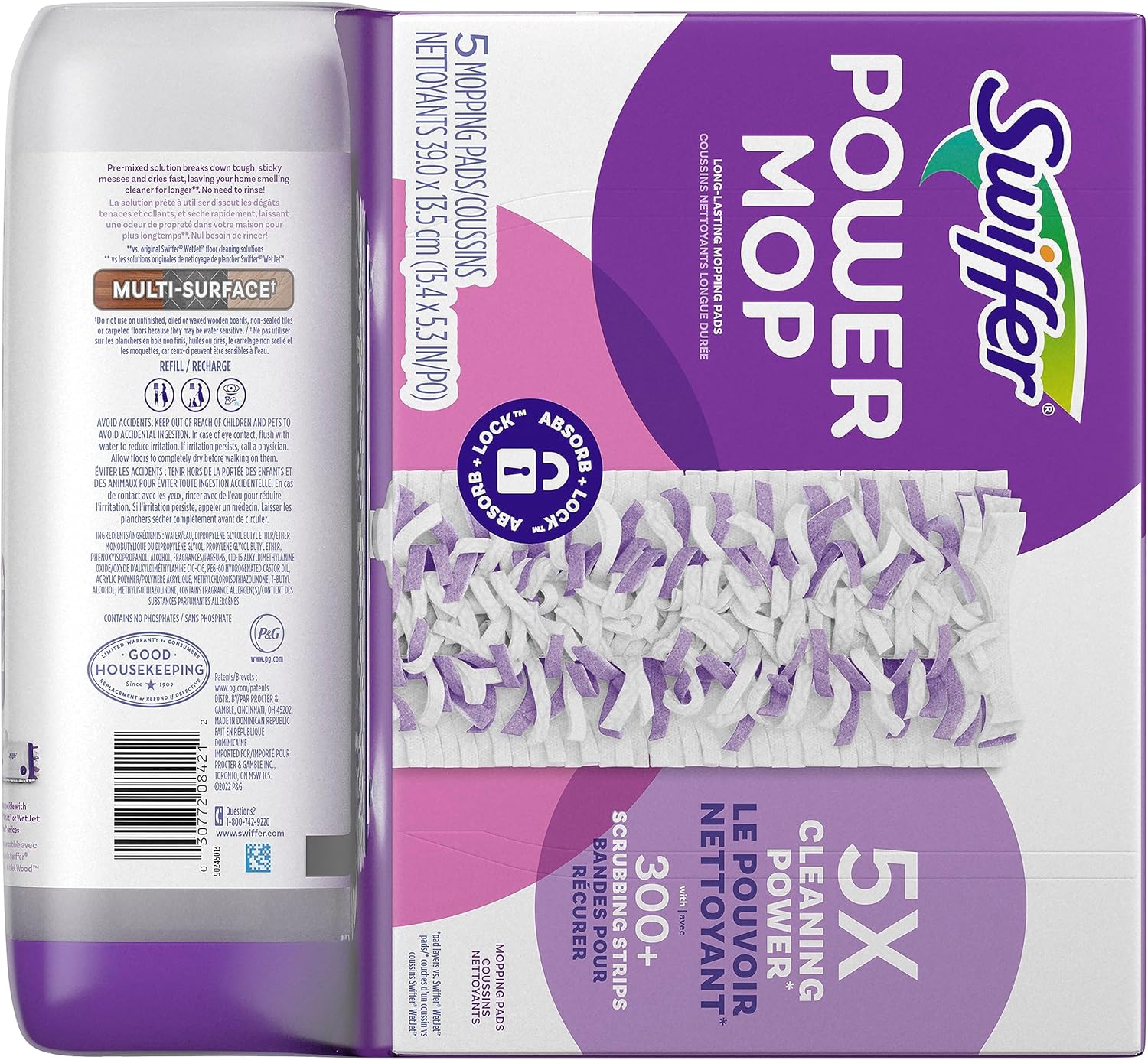 - Includes 5 PowerMop Multi-Surface Mopping Pad Refills and 1 25.3 fl oz bottle of Swiffer PowerMop Floor Cleaning Solution, Lavender Scent
