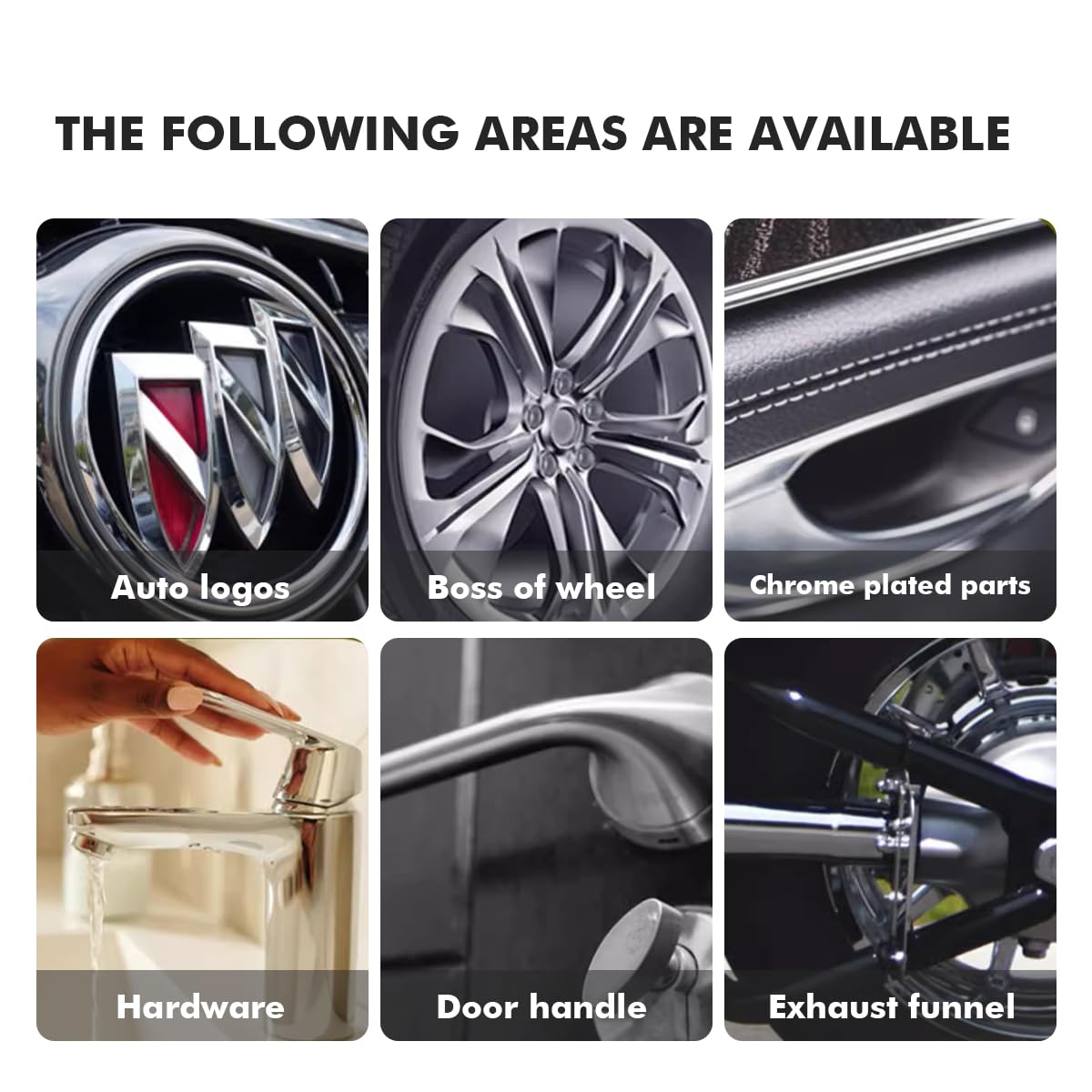- ADVANCED CLEANING - The chrome cleaner cuts through grime without precleaning, quick way to clean any hard or decorative chrome finish, including chrome plating, PVD chrome, and even today's chromed plastics, easy to removes fingerprints, smudges, dust and even light water spots, Effectively eliminates stains, oxidation, and grime, and add a long-lasting shine. keep your wheels, trim and accessories sparkling, anytime, anywhere.