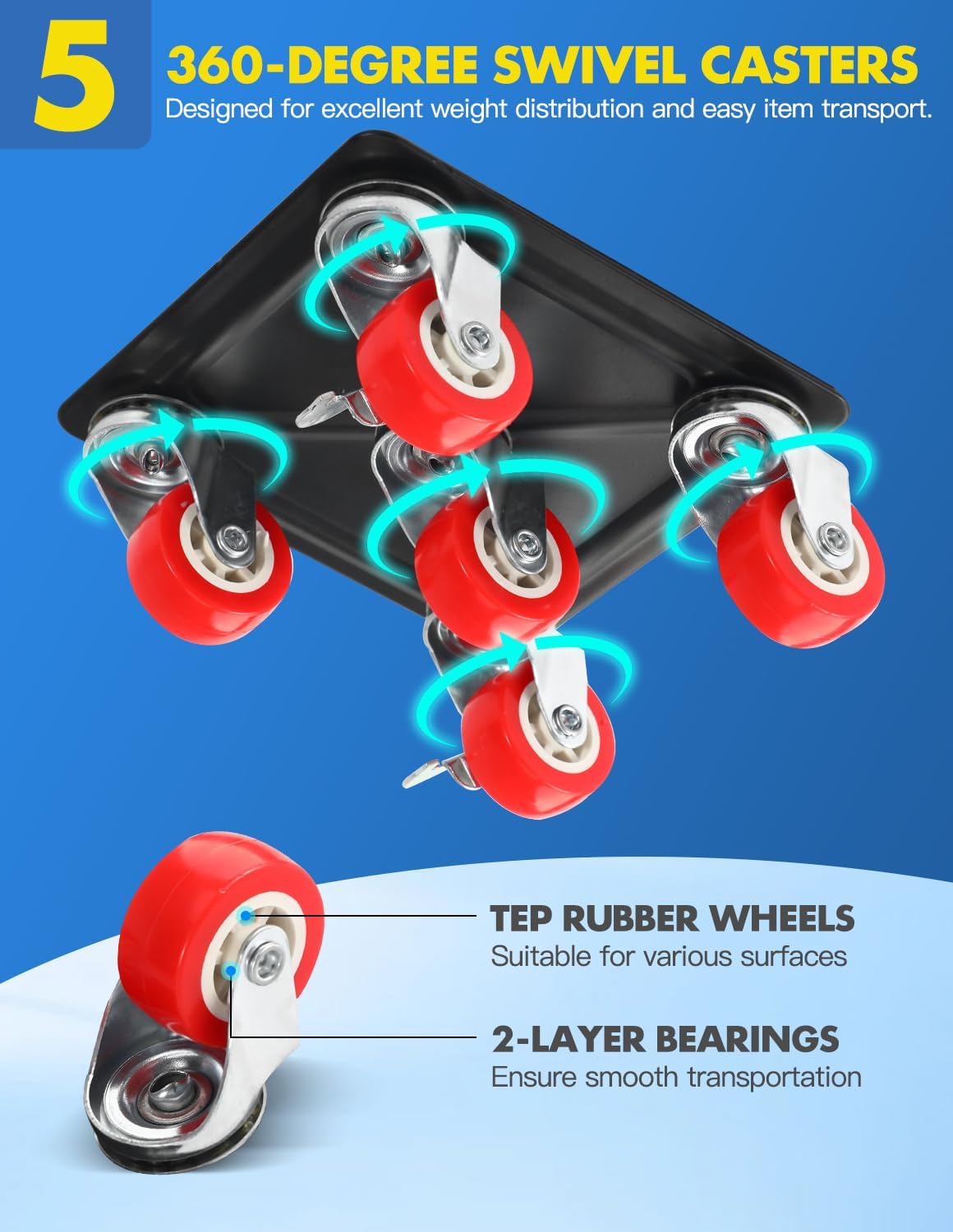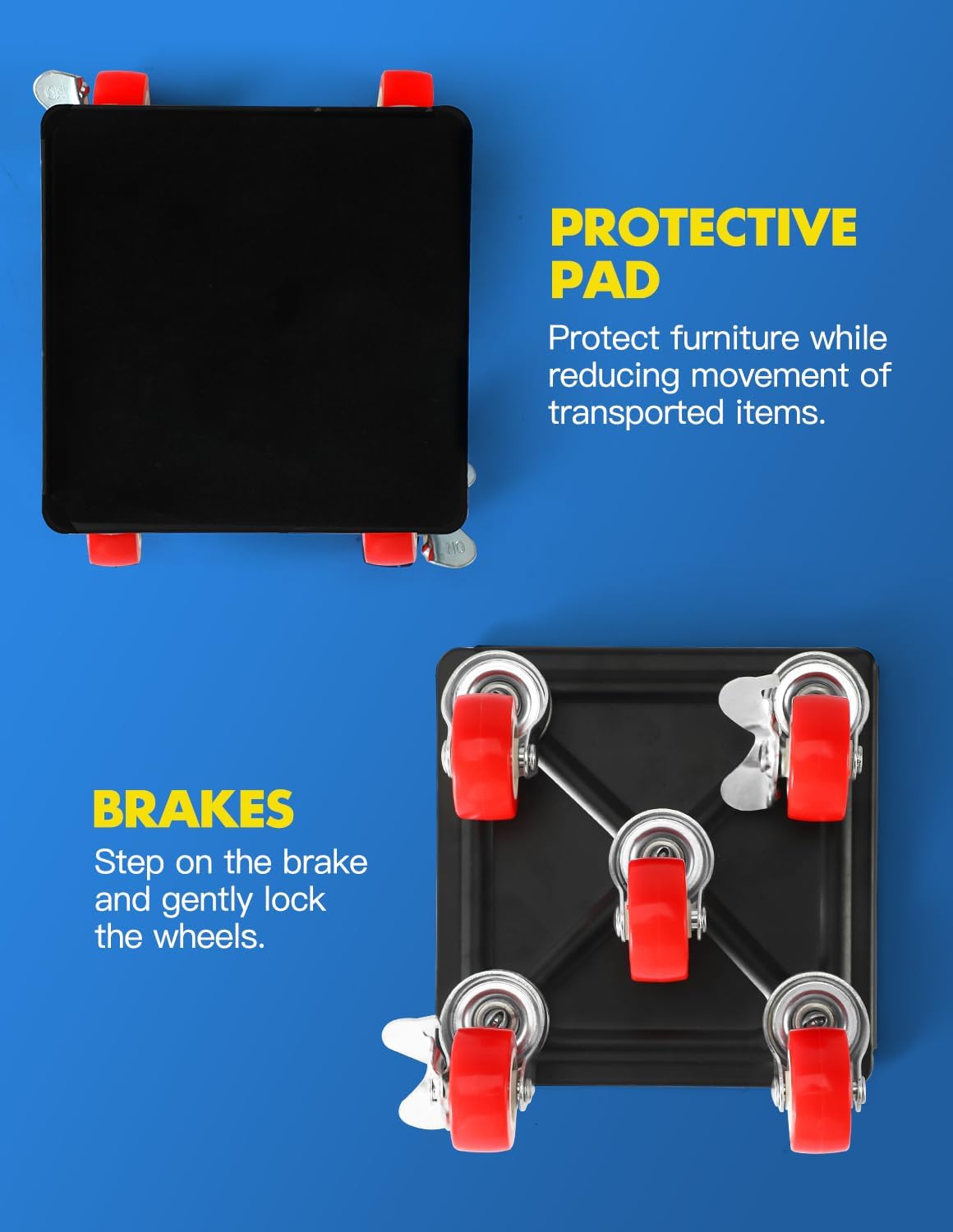 Heavy Duty Industrial Furniture Movers with Wheels, Dolly, Lifter, Sliders, 5 Rollers Casters Cart, Black, 1200 lb Capacity