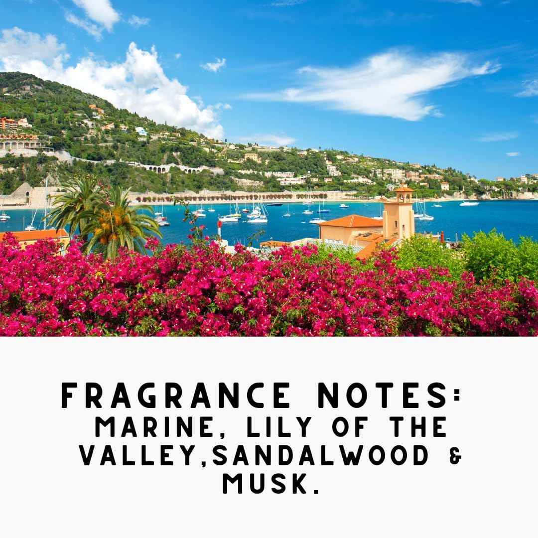 - Luxurious Fragrance: Immerse yourself in a symphony of scents that transport you to the azure shores of the Côte d’Azur. The marine notes evoke the freshness of the sea, while sandalwood adds a touch of warmth and sophistication. Lily of the valley offers a delicate floral aroma, complemented by the deep, musky undertones that linger on your garments.