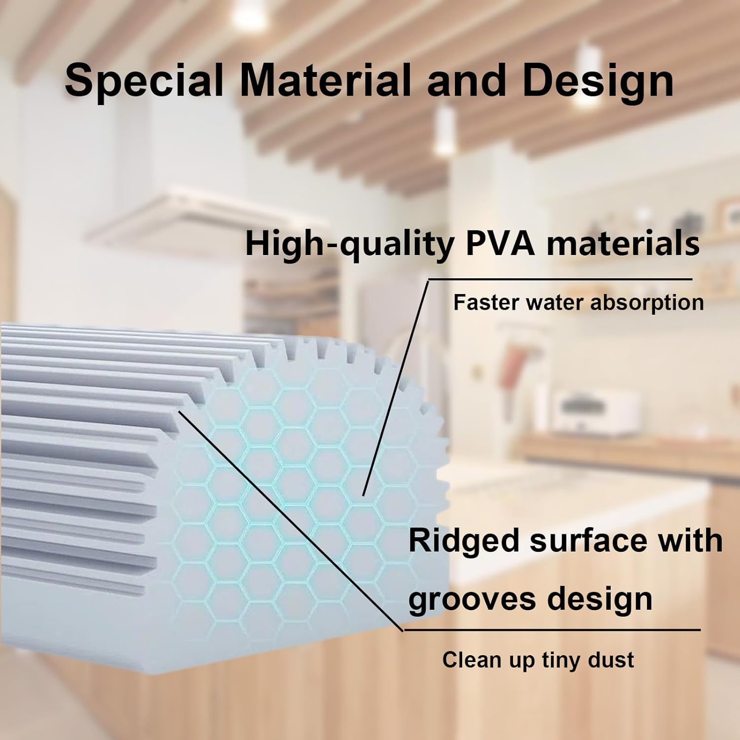 - 【Unique Design】: Made of PVA material sponge,it can absorbs water faster. Featuring a ridged surface design with grooves and a dual textured design capture dust easier. Professional design helps in cleaning